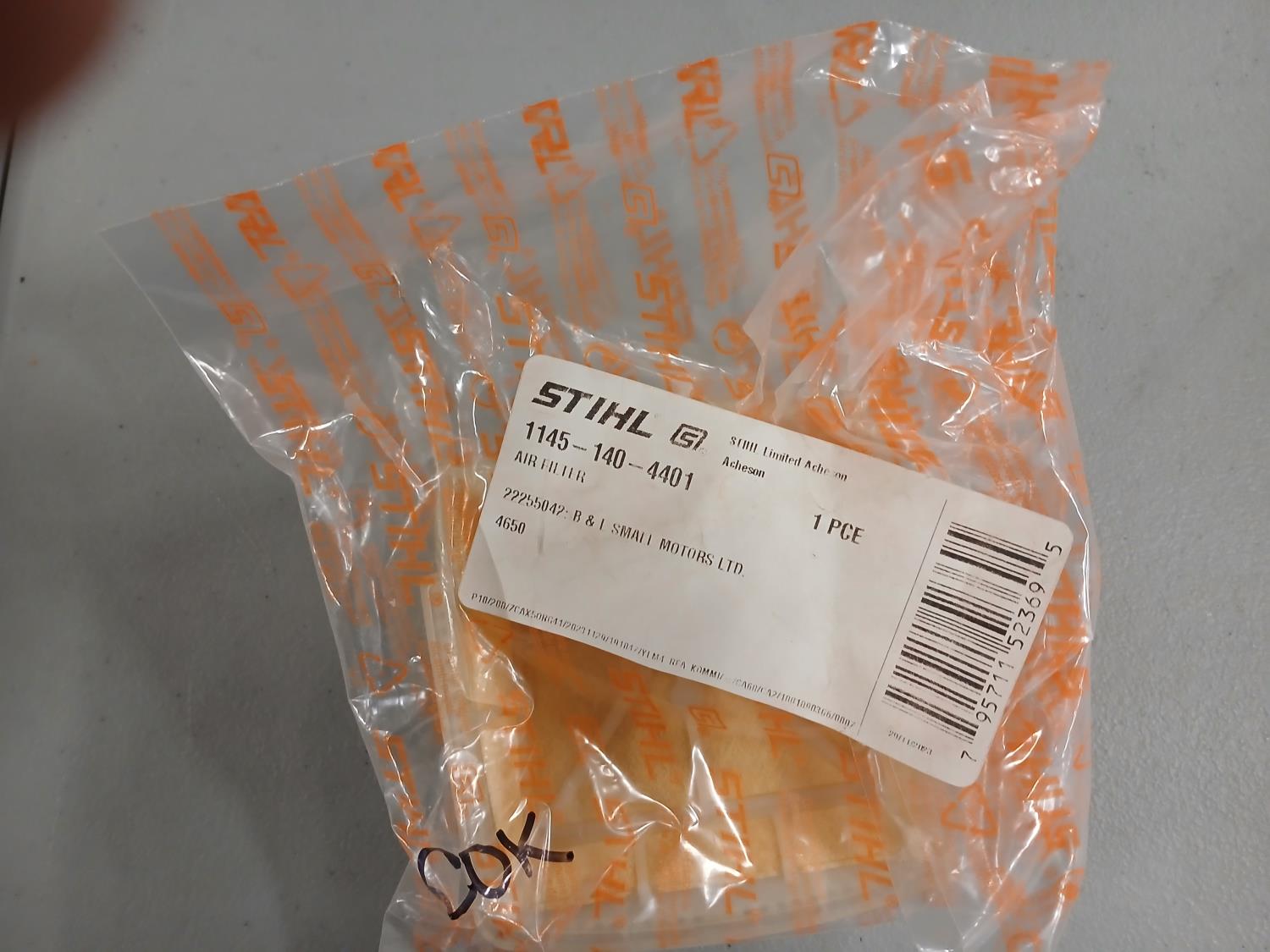 (7) Stihl 100-705 filters, (7) Husqvarna air filters, (4) Stihl air filters, (2) Stihl 1145-140-4401 air filters, (2) Stihl 14 inch bars with (4) chains, (3) 24 inch chains, (6) Husqvarna 365 chains.