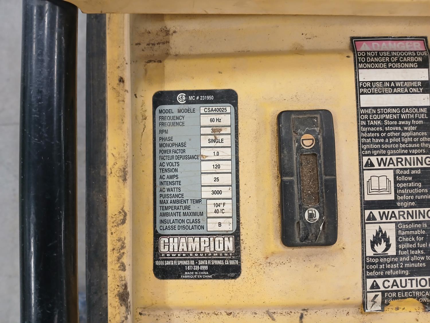 1697 Champion 3500 CSA40025 Gas Powered Generator