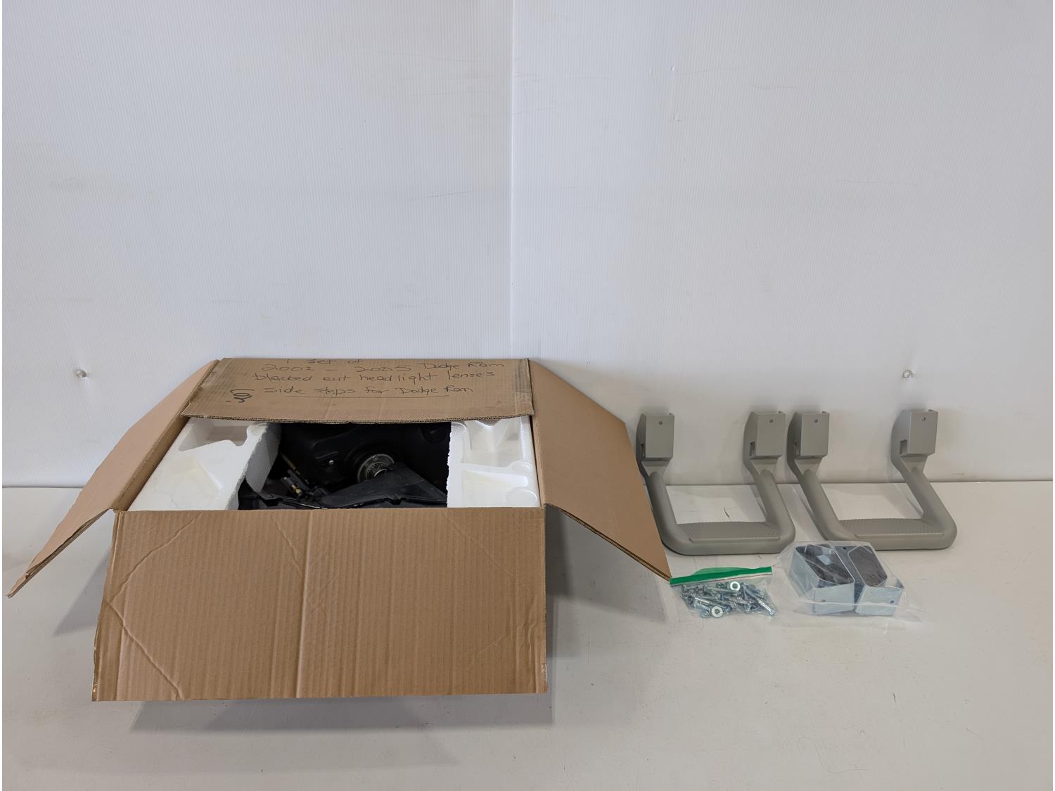 1043 (2) Dark Headlight Lenses and (2) Dodge Side Steps