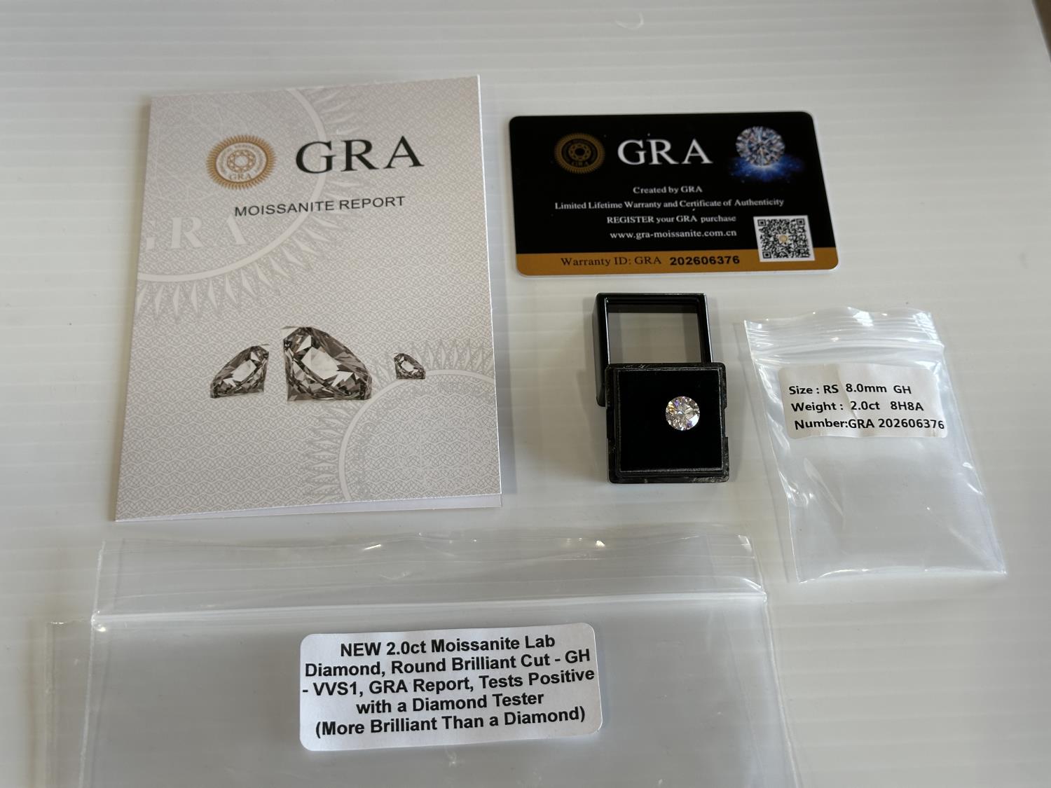 1483 Smartlife 2.0 Ct Moissanite Round Brilliant Cut Lab Diamond (Unused)