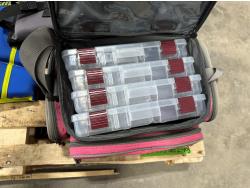 (3) kids life jackets, poly water can, Plano soft tackle bag, single water ski