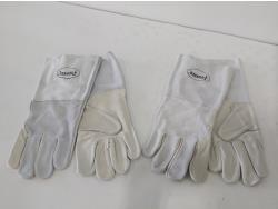 (3) L-XL quilted safety vests, (3) XL safety vests, (2) pairs of XL leather welding gloves