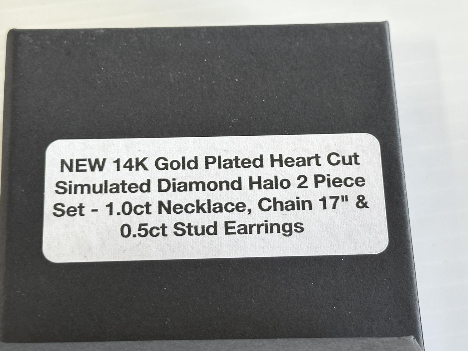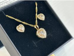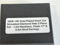 Simulated diamonds, 14K gold plated, 1.0ct necklace on 17 inch chain, 0.5ct each earring