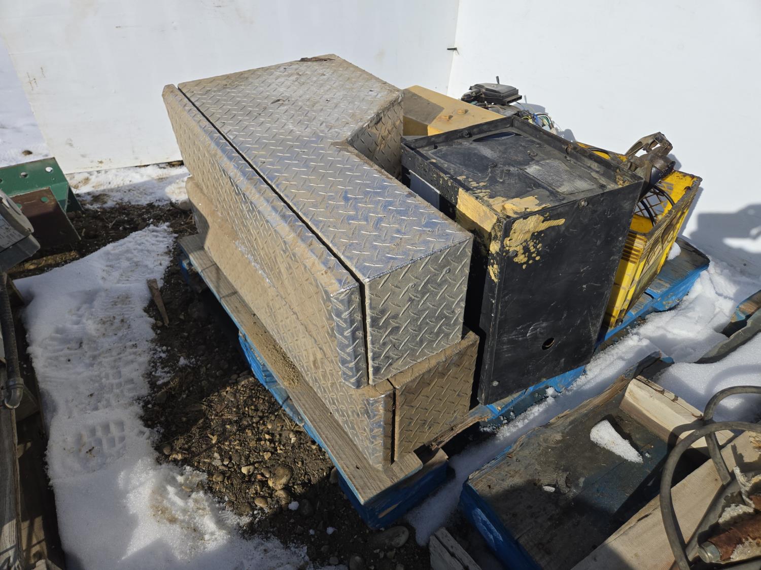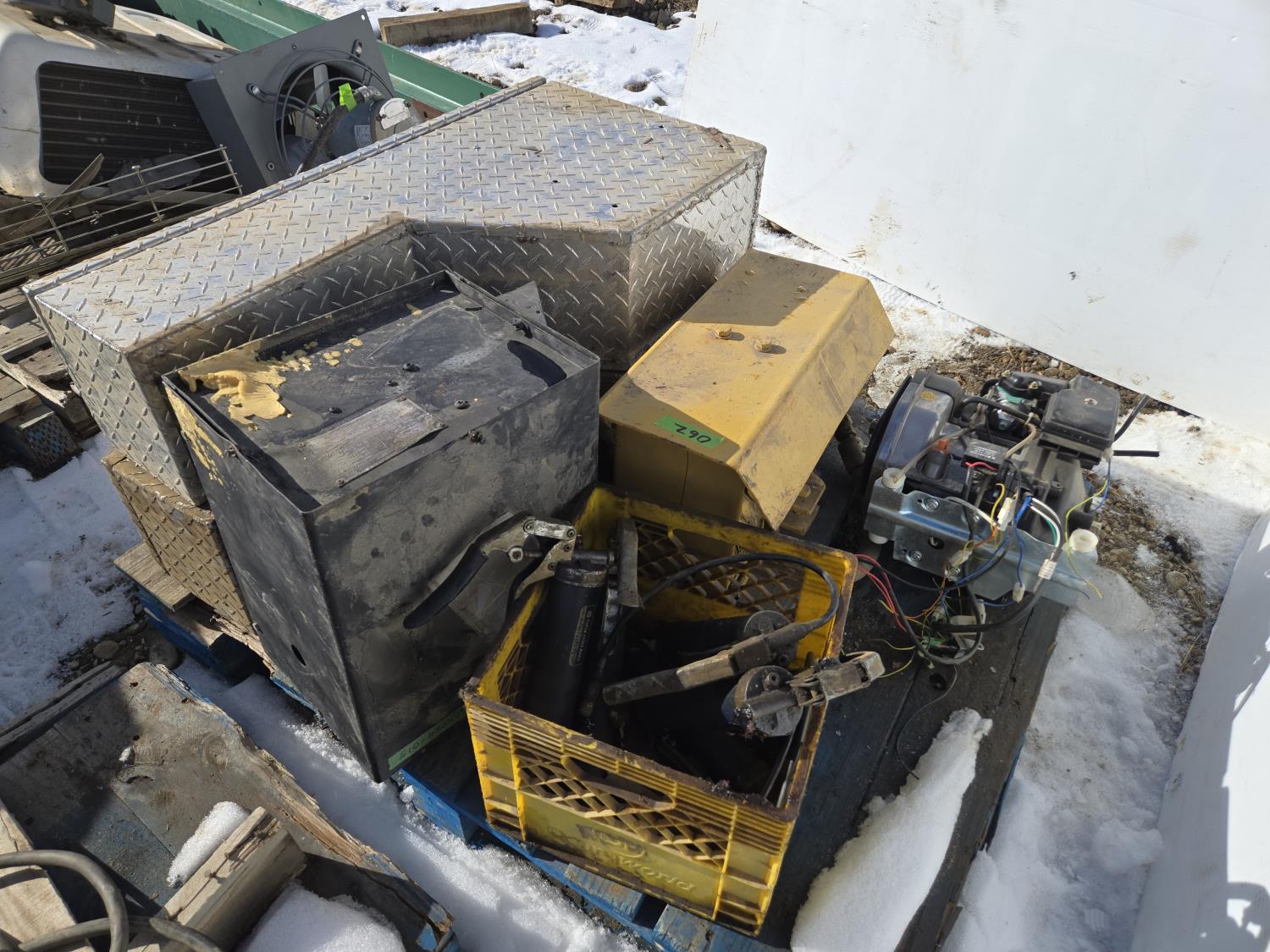 671 (2) Aluminum Cabinets, Vehicle Heater, (6) Grease Guns, Gas Motor, Pump/Valve
