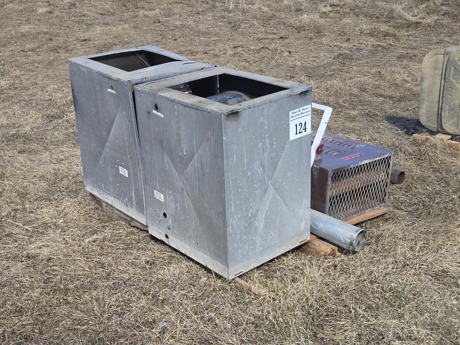 618 (2) Furnace Blower Fans, 5 HP 3 Phase Motor, Flamemaster Heater (Unused)