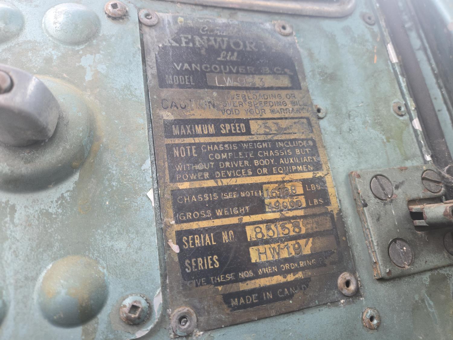 886 Kenworth LW923 T/A Day Cab Cab & Chassis Truck (Inoperable)