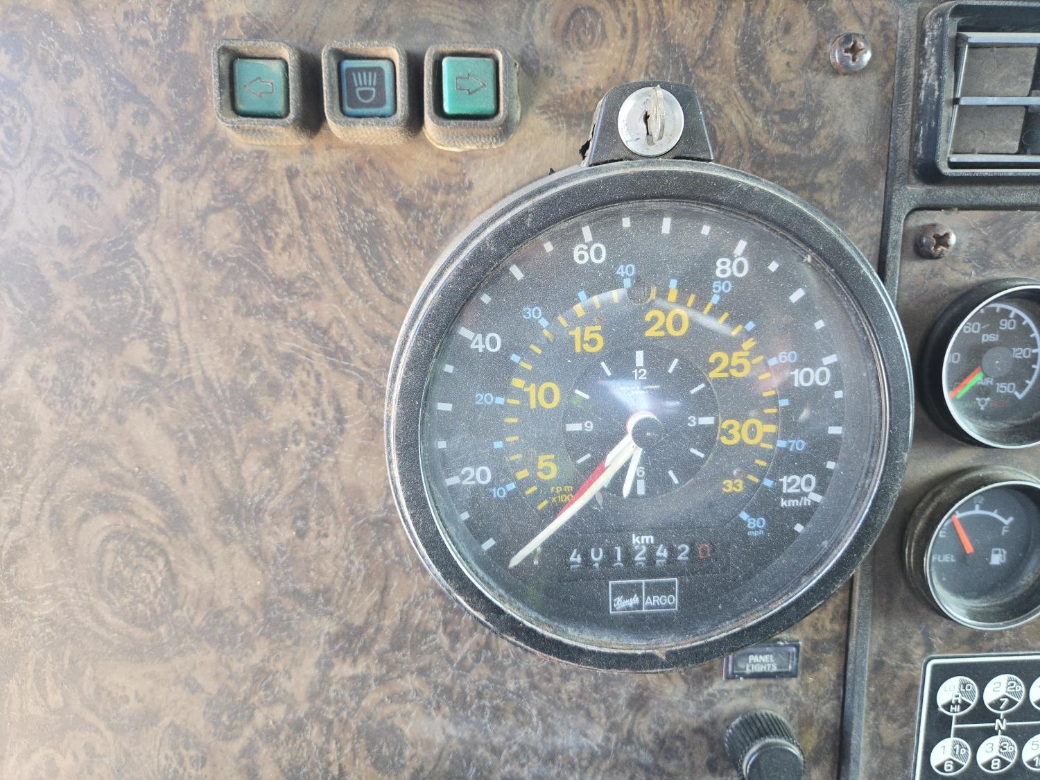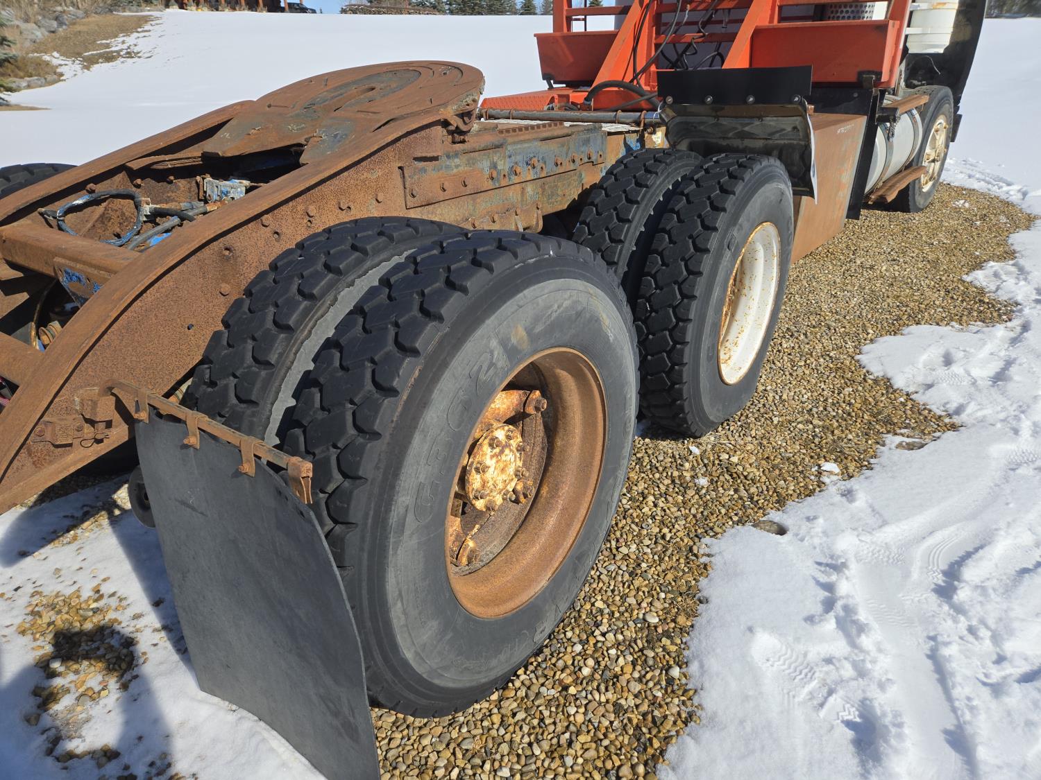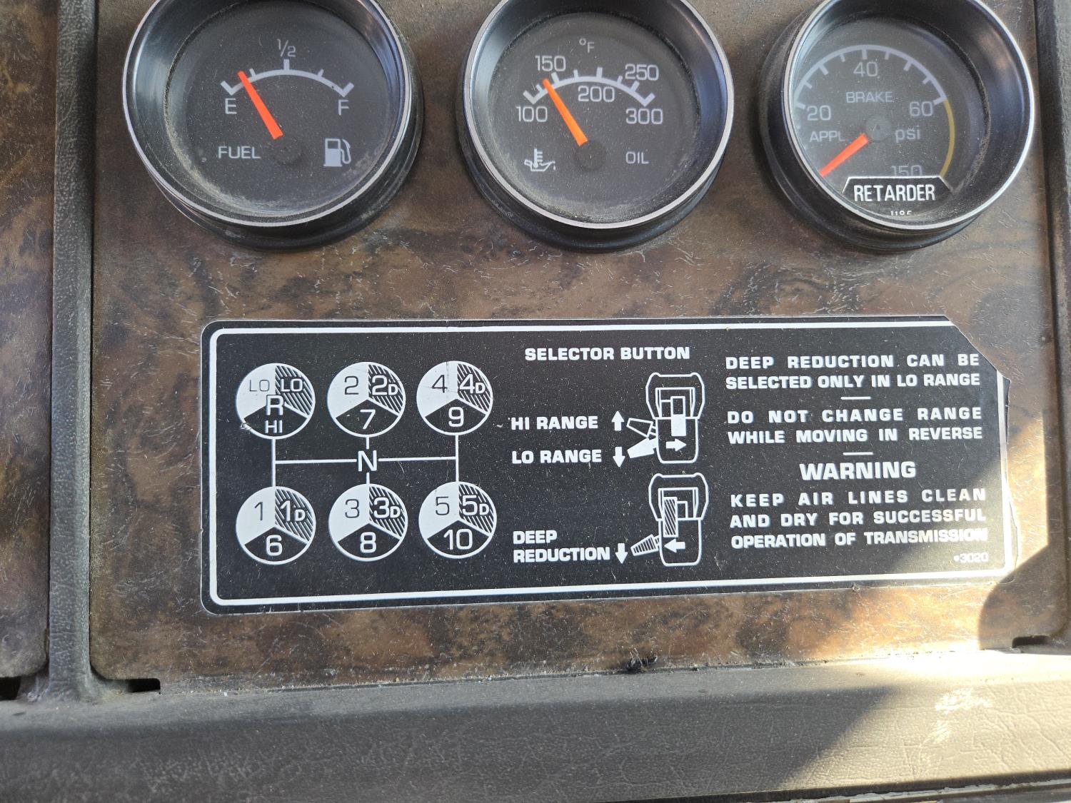 Caterpillar 3406 6 cylinder engine, 8LL manual transmission, sloped rear frame, headache rack, 5th wheel, spring suspension, 4.33 ratio, 11R24.5 tires