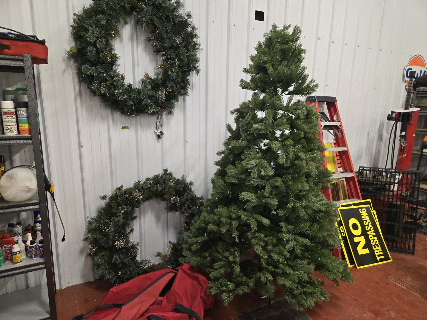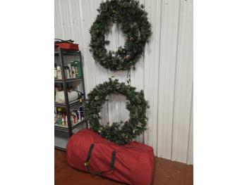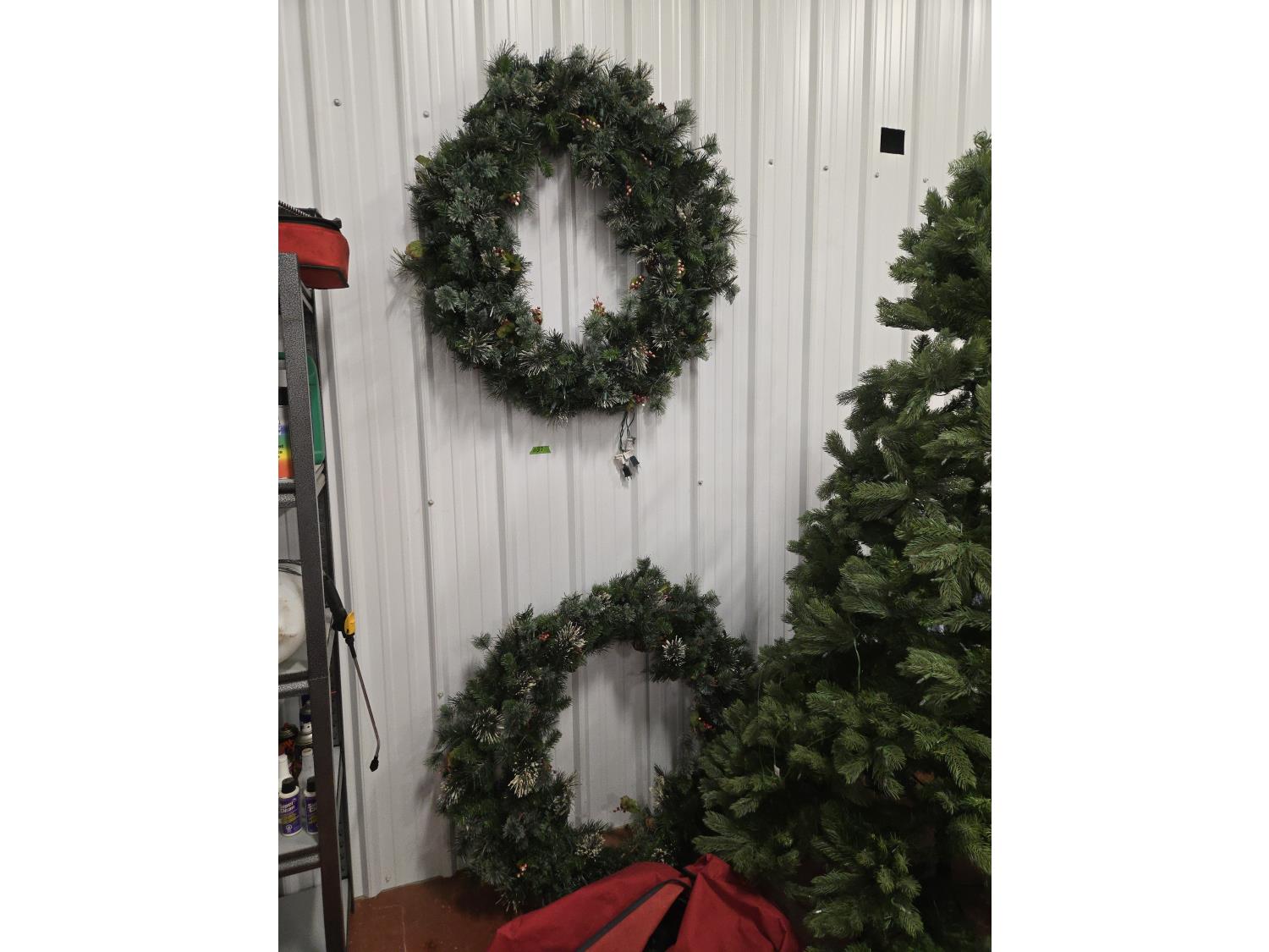 10 (2) 36 Inch Christmas Wreath's, 8 Ft Christmas Tree with Lights and Storage Bag