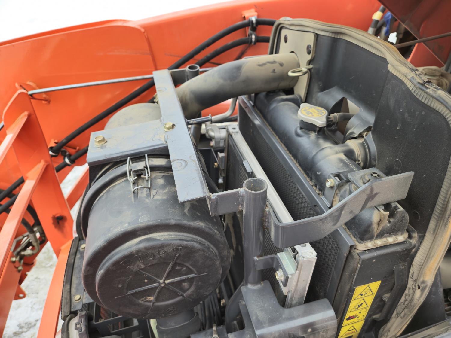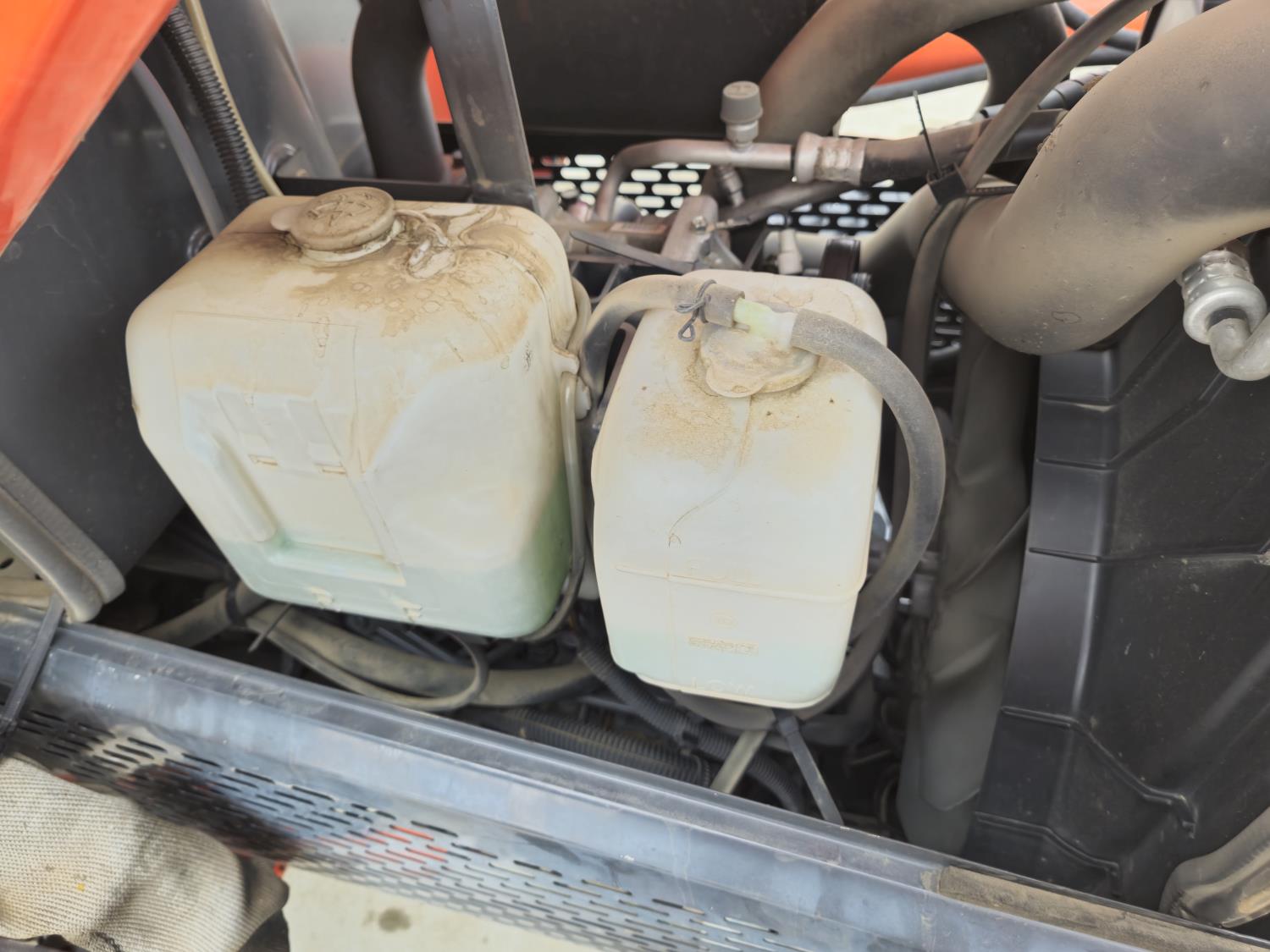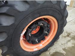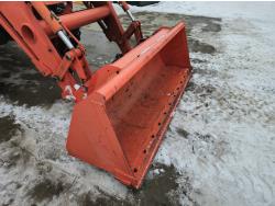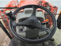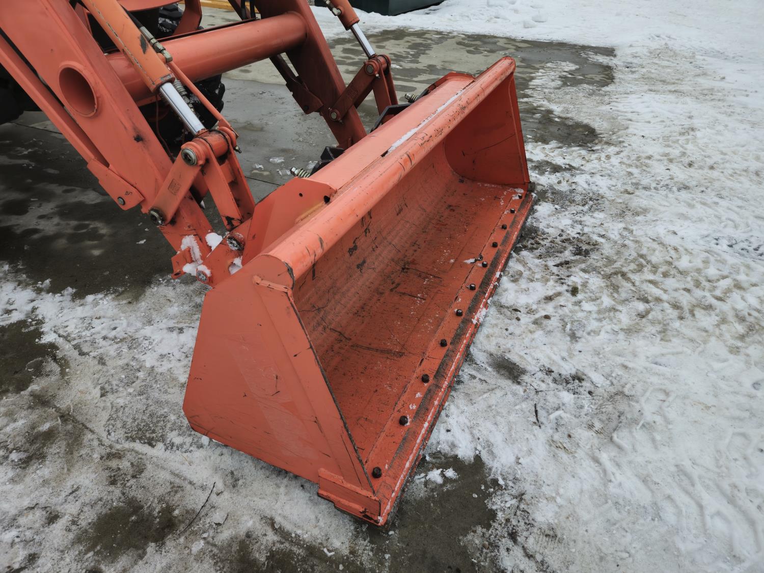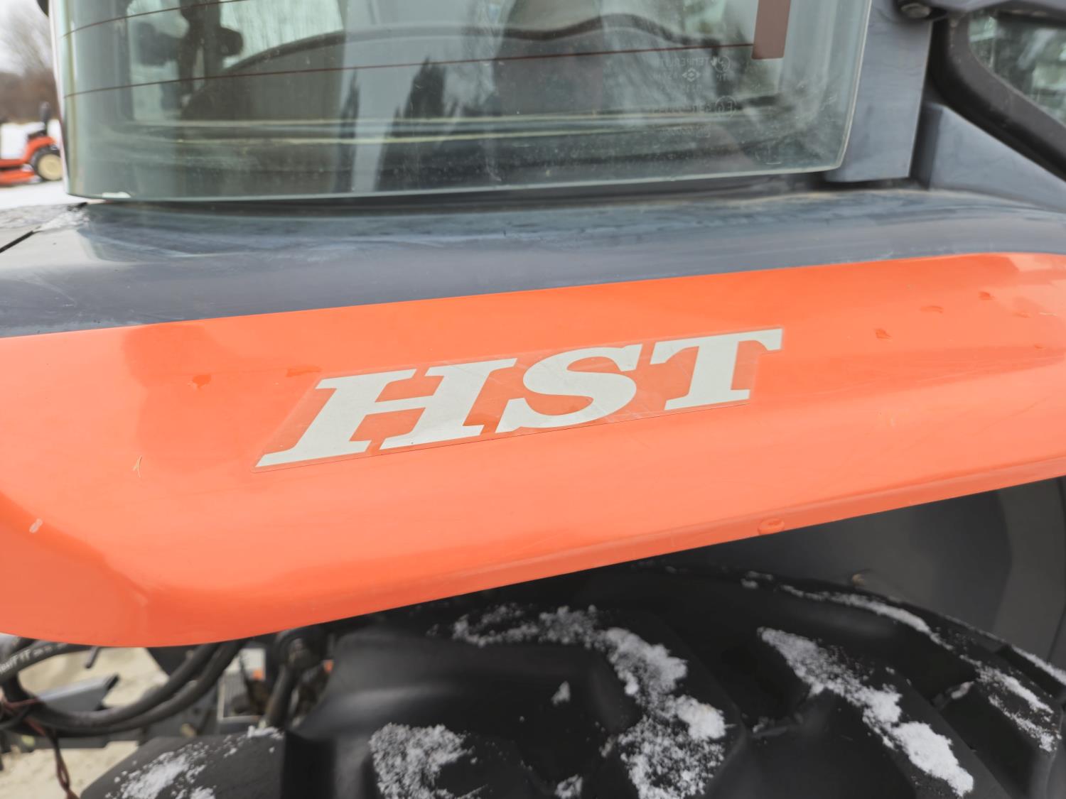Kubota LA854 loader, 72 inch bucket, grill guard, Kubota 2.4 4 cylinder 59 HP, diesel engine, 50 PTO HP, hydro 3 range transmission, cab, rear differential lock, joystick, A/C, radio, hydraulic Q/A bucket, 540 PTO, Q/A 3 point hitch, 2 rear hydraulic outlets, rear wheel weights, 10-16.5 front tires, 17.5L-24 rear tires