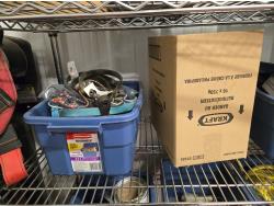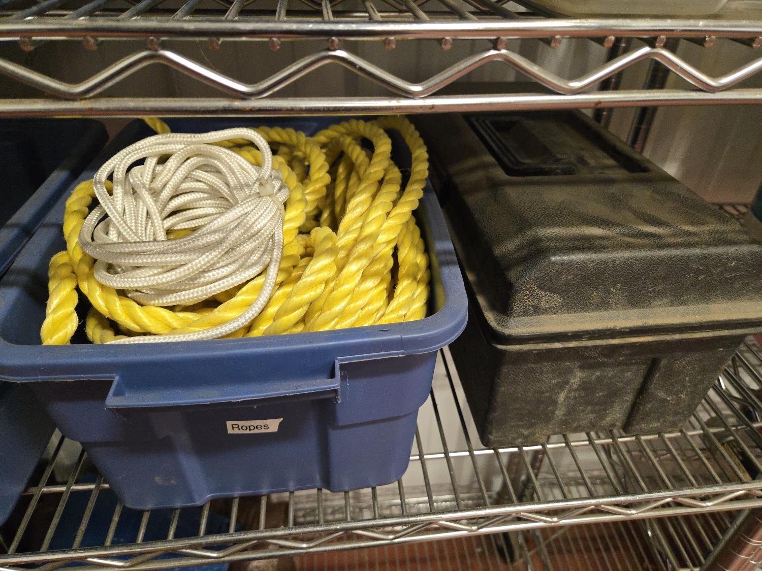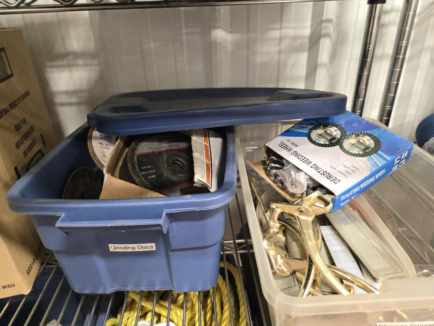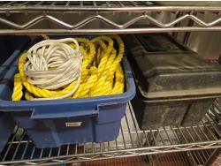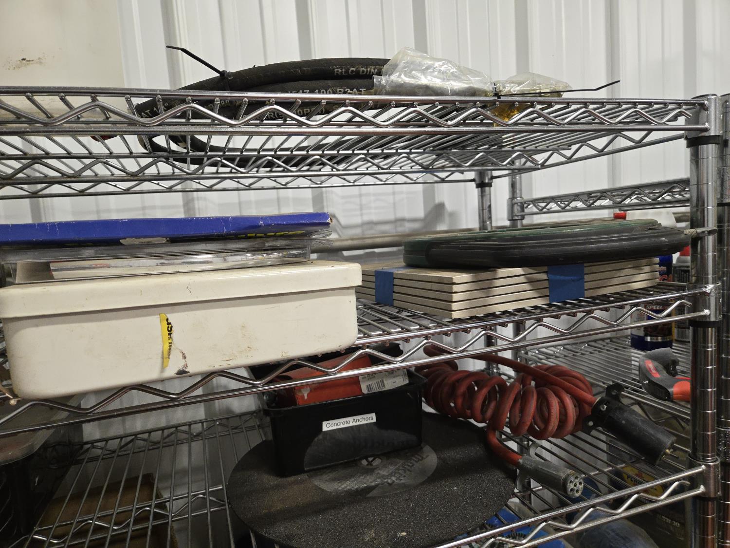 poly tarps, trailer connector harness, rope, string, miscellaneous tape, bungee cords, concrete anchors, steel fish tape, Flexible chrome trim, miscellaneous items