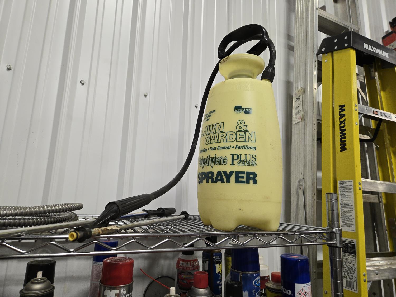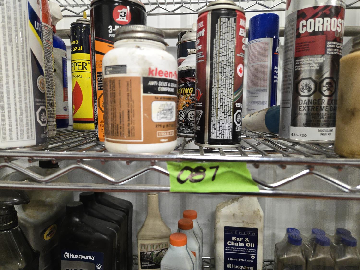 Part jug of Round up, part jug on Curtail M, Shop oils and fluids, sealants, 2 stroke oil, miscellaneous spray cans, mis items