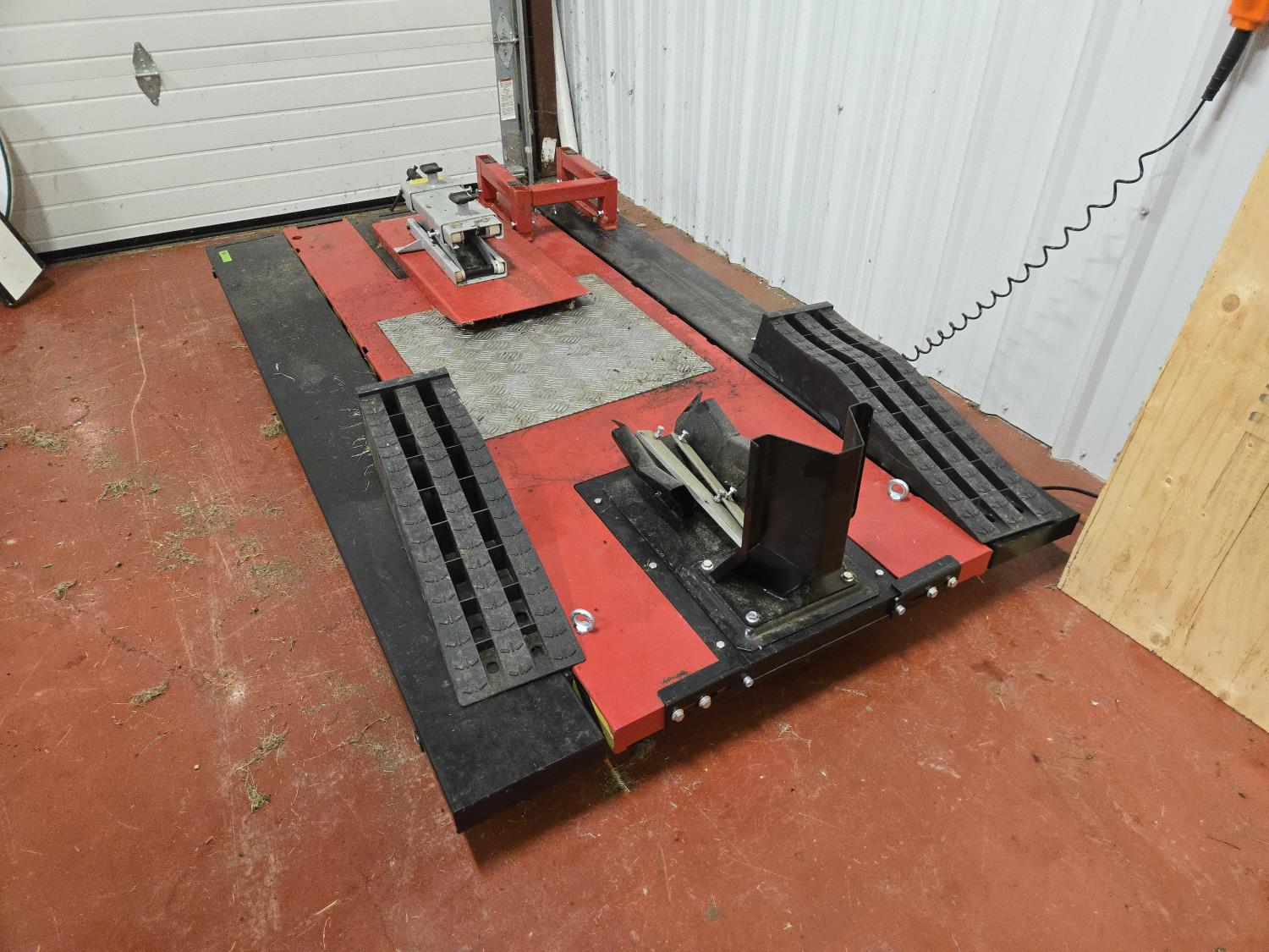 front motorcycle wheel lift, motor lift, side extensions, corded remote, 110 volt