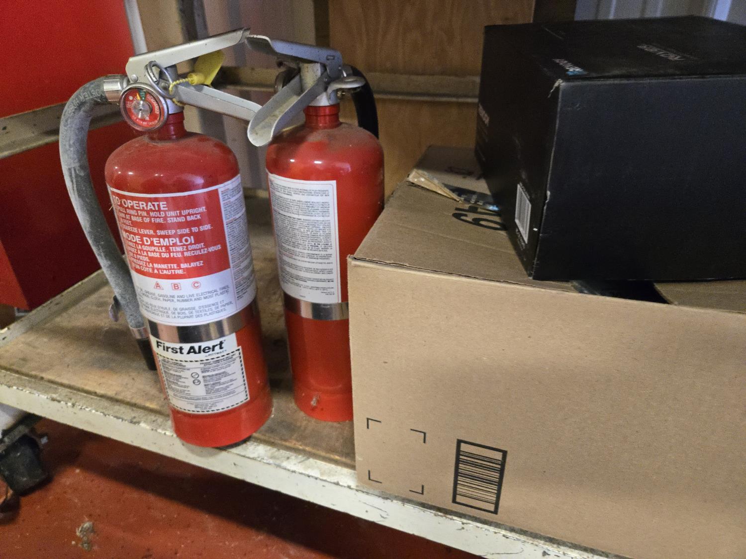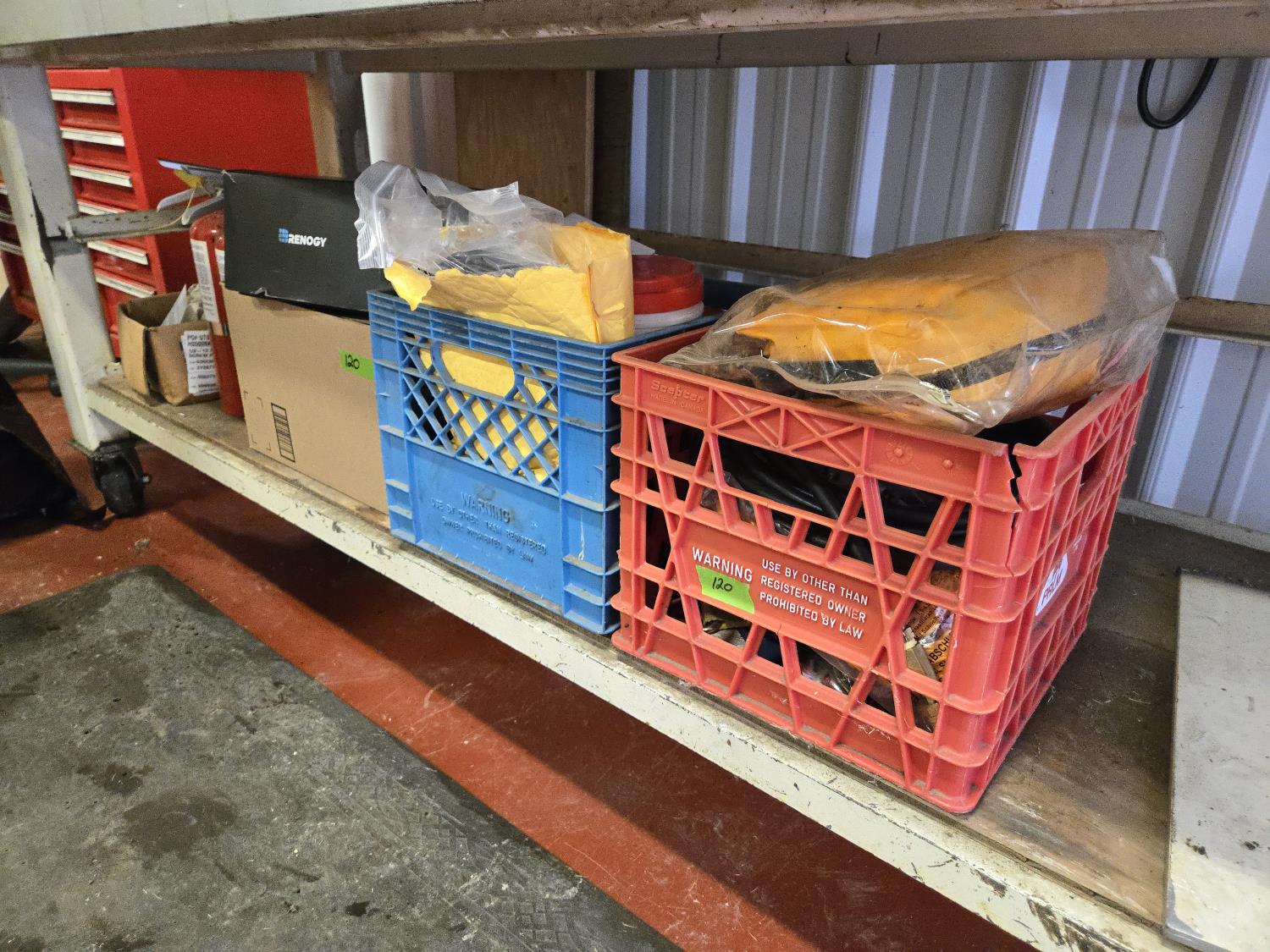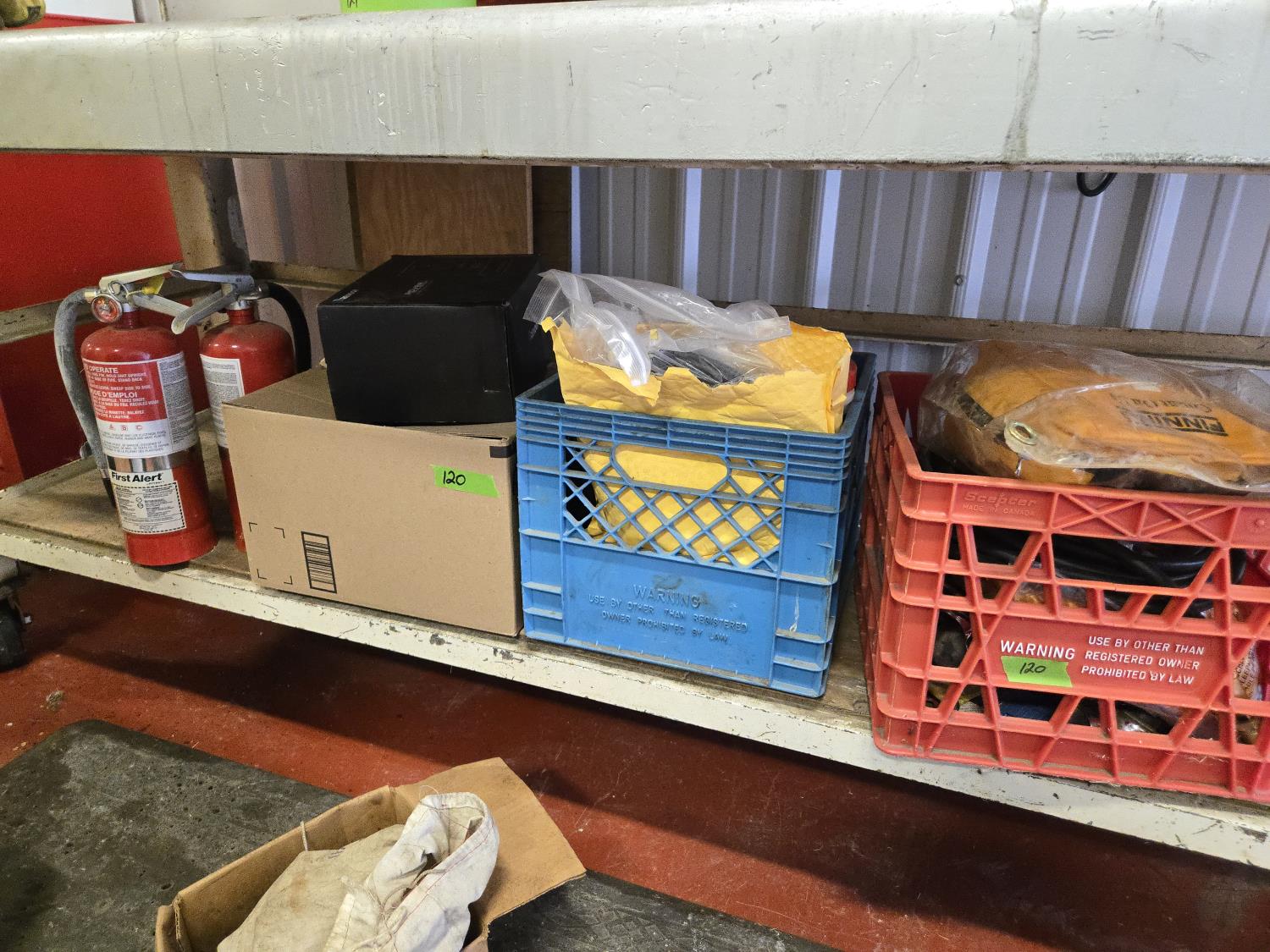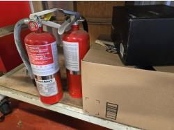 (2) fire extinguishers, tow rope, Qty of bolts and screws, first aid kit, Rover charge controller (unused), miscellaneous items