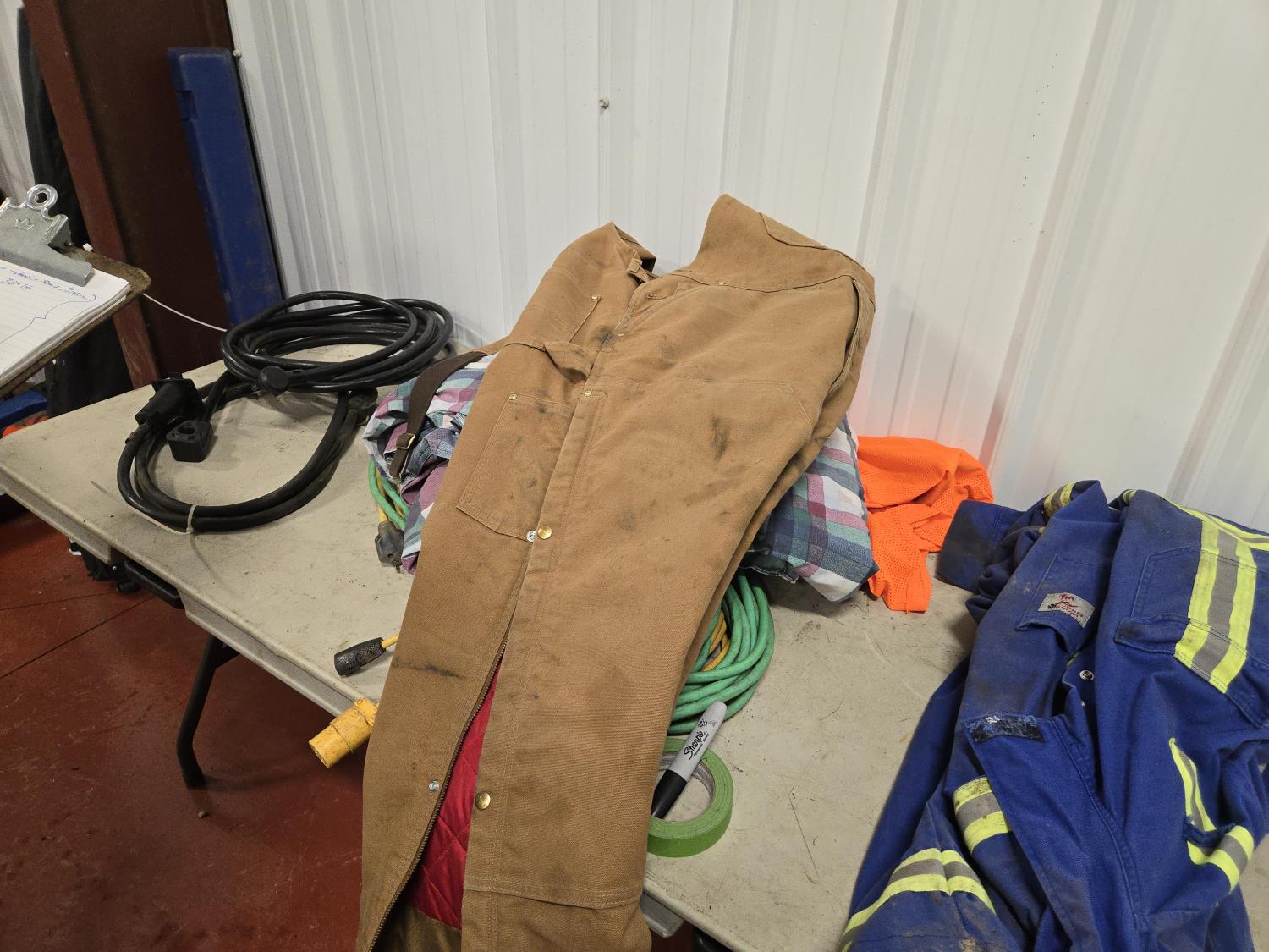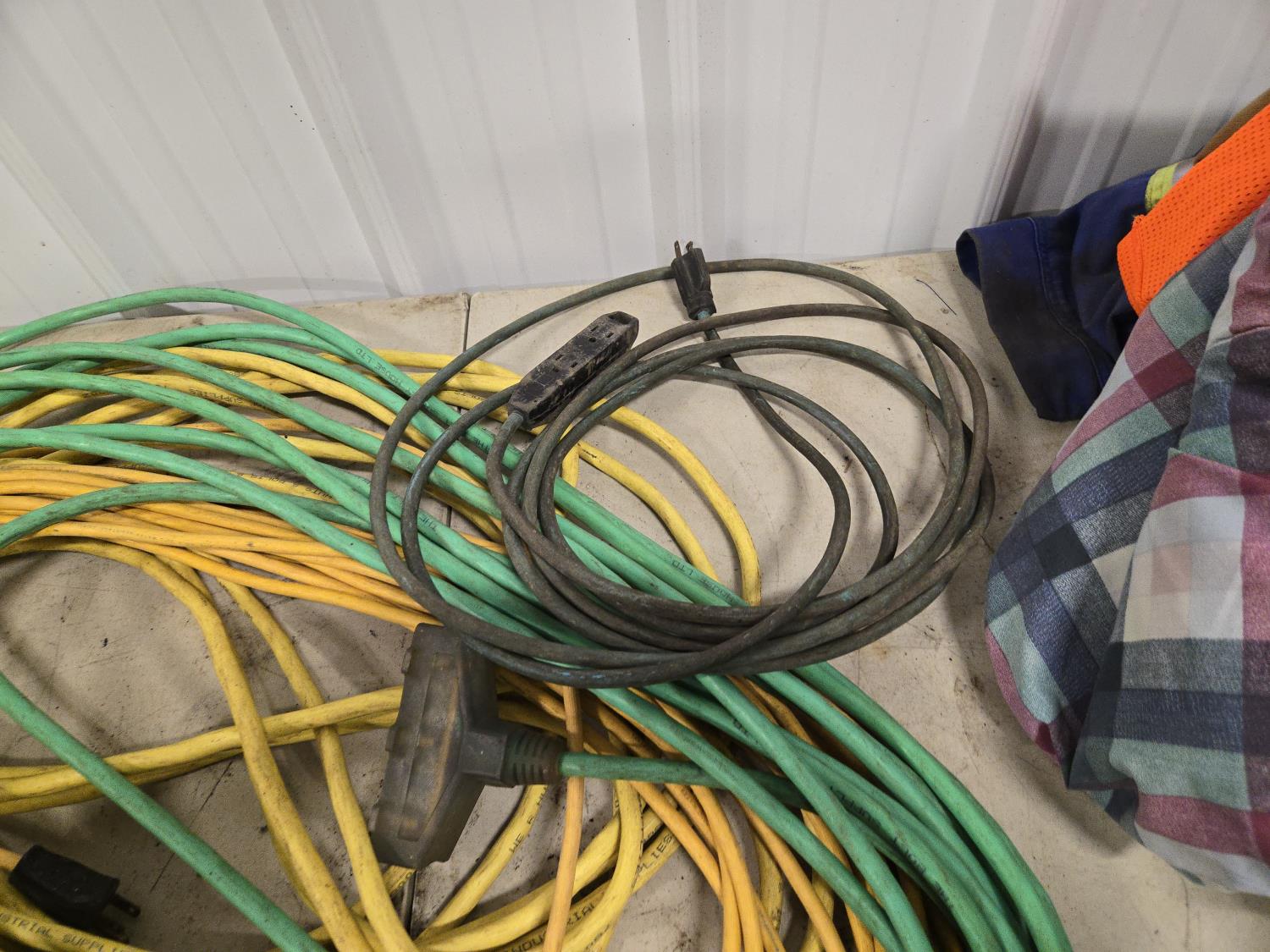 Qty of extension cords, Quilt, siz quilted coveralls, 54 tall High Vis, coveralls, high vis shirt