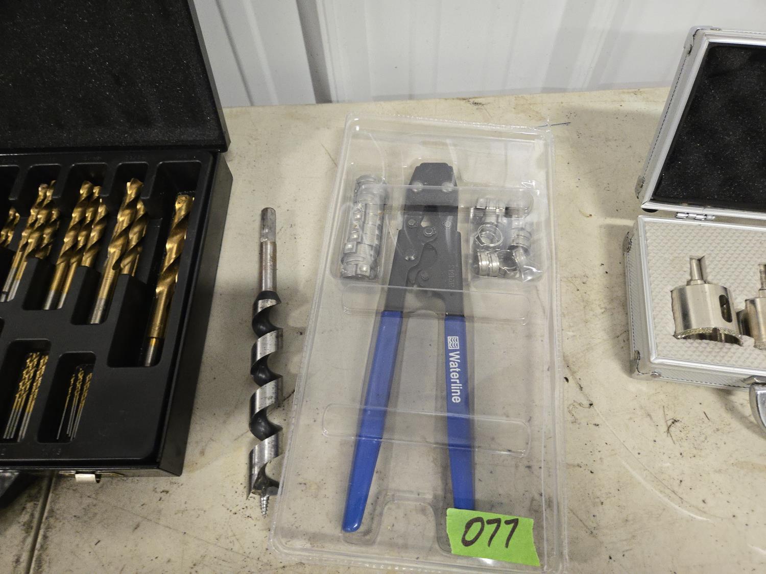 Diamond hole saw kit, hose crimper, Qty of drill bits, Milwaukee reciprocating saw with blades