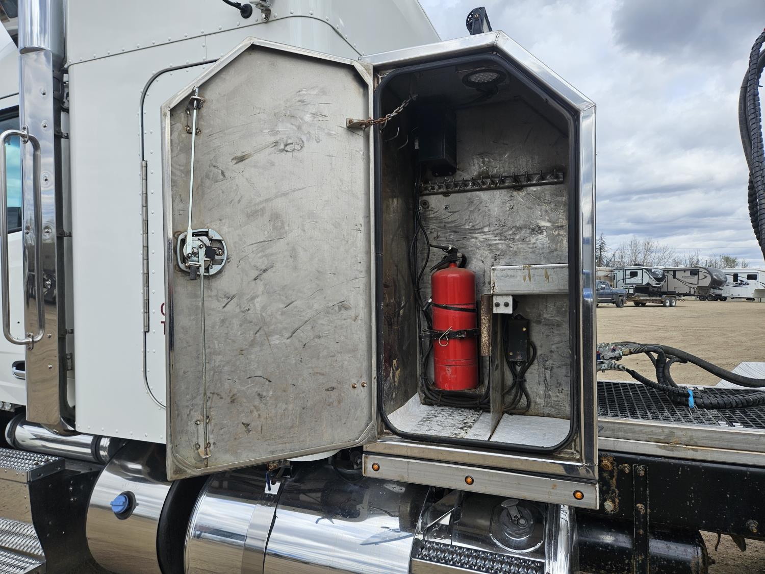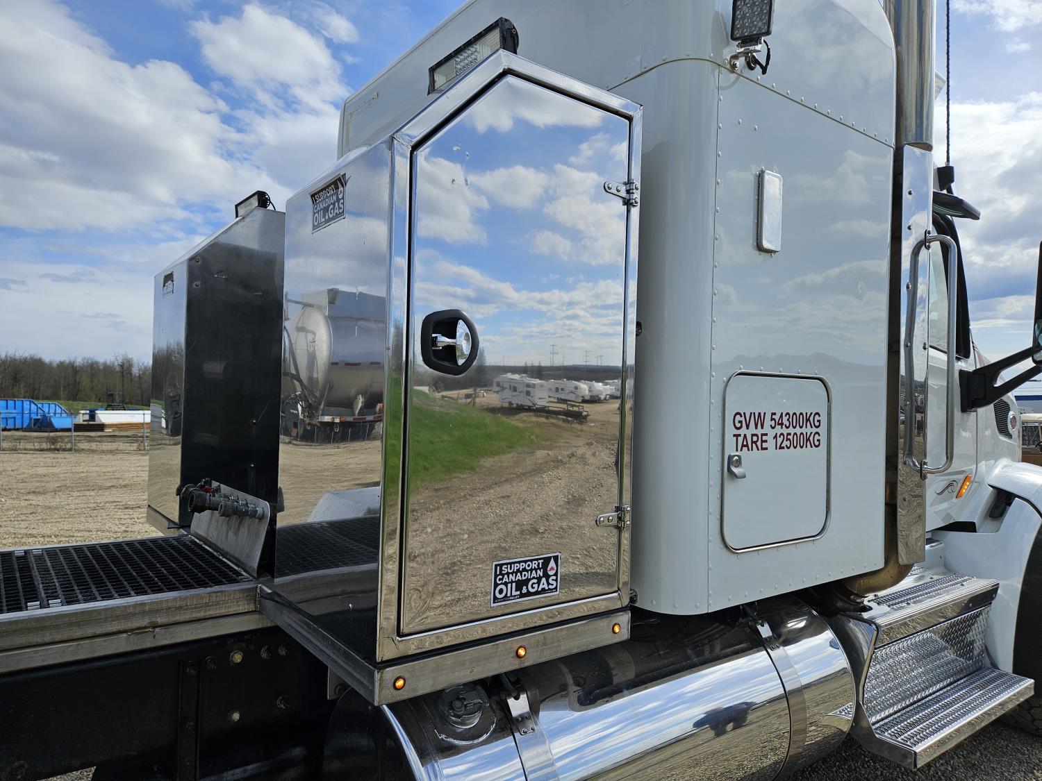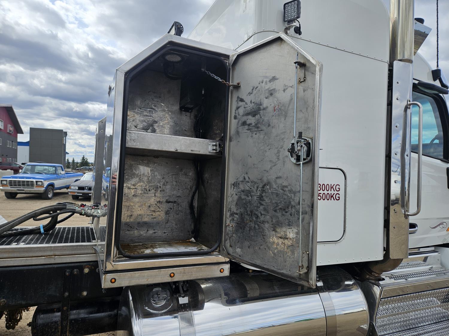 Cummins X15 15 L 565 HP engine, DEF deleted, engine brake, engine block heater, positive air shutoff, emissions deleted, Eaton Fuller 18 speed manual transmission, sleeper, fridge, A/C, cruise control, leather interior, navigation system, air ride seats, radio, 2-way radio, stereo, Webasco cab heater, hydraulic wet kit, tool boxes, air ride cab, chain holders, heated tool boxes, hydraulic oil cooler, hydraulic pump, air ride suspension, 16,000 lb front axle, 55,000 lb rear axles, full lockers, all aluminum wheels, 385/65R22.5 front tires, 11R24.5 rear tires