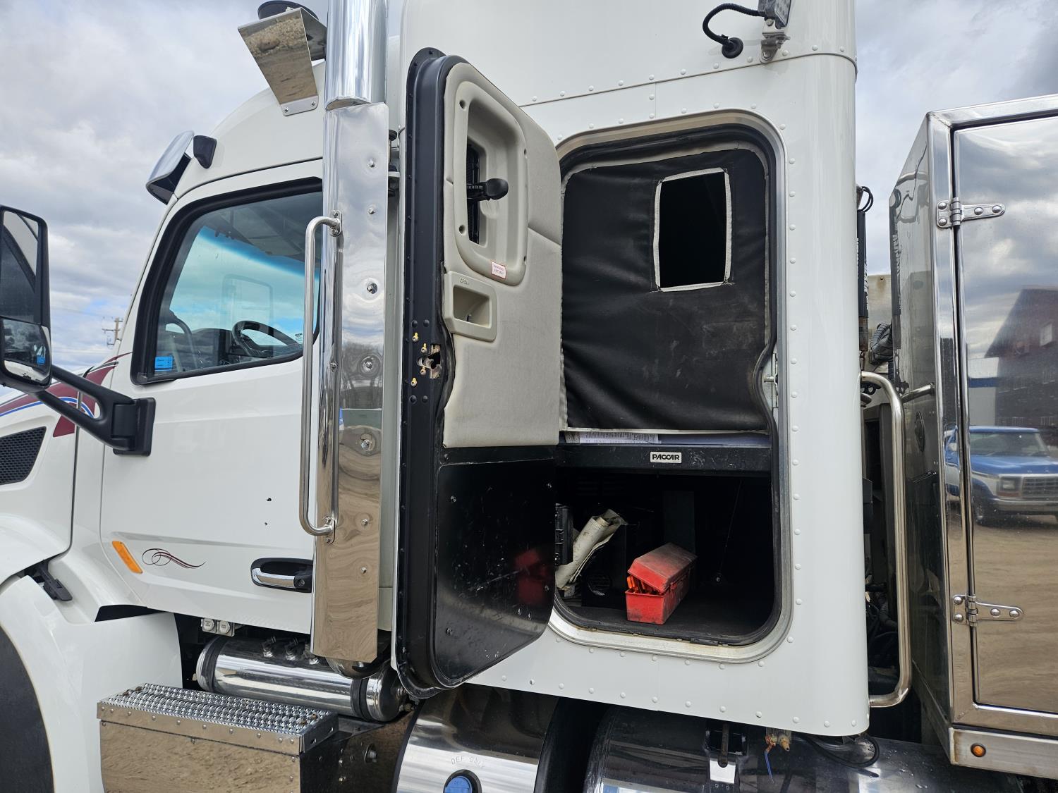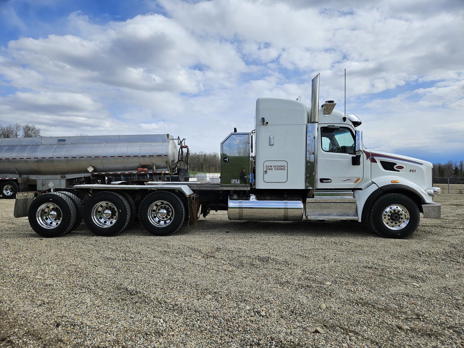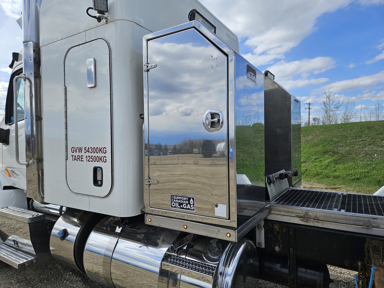 Cummins X15 15 L 565 HP engine, DEF deleted, engine brake, engine block heater, positive air shutoff, emissions deleted, Eaton Fuller 18 speed manual transmission, sleeper, fridge, A/C, cruise control, leather interior, navigation system, air ride seats, radio, 2-way radio, stereo, Webasco cab heater, hydraulic wet kit, tool boxes, air ride cab, chain holders, heated tool boxes, hydraulic oil cooler, hydraulic pump, air ride suspension, 16,000 lb front axle, 55,000 lb rear axles, full lockers, all aluminum wheels, 385/65R22.5 front tires, 11R24.5 rear tires