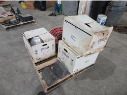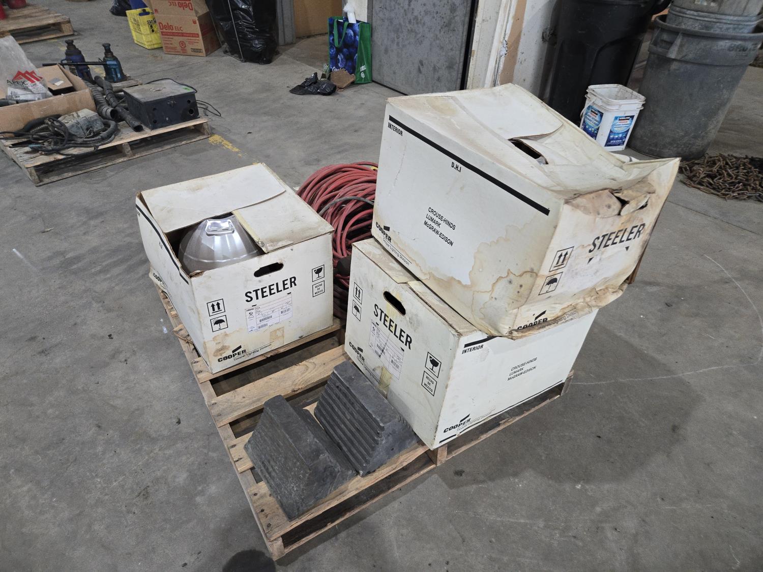 43 Qty of Air Hose, (3) 400 Watt Shop Lights, Wheel Chocks