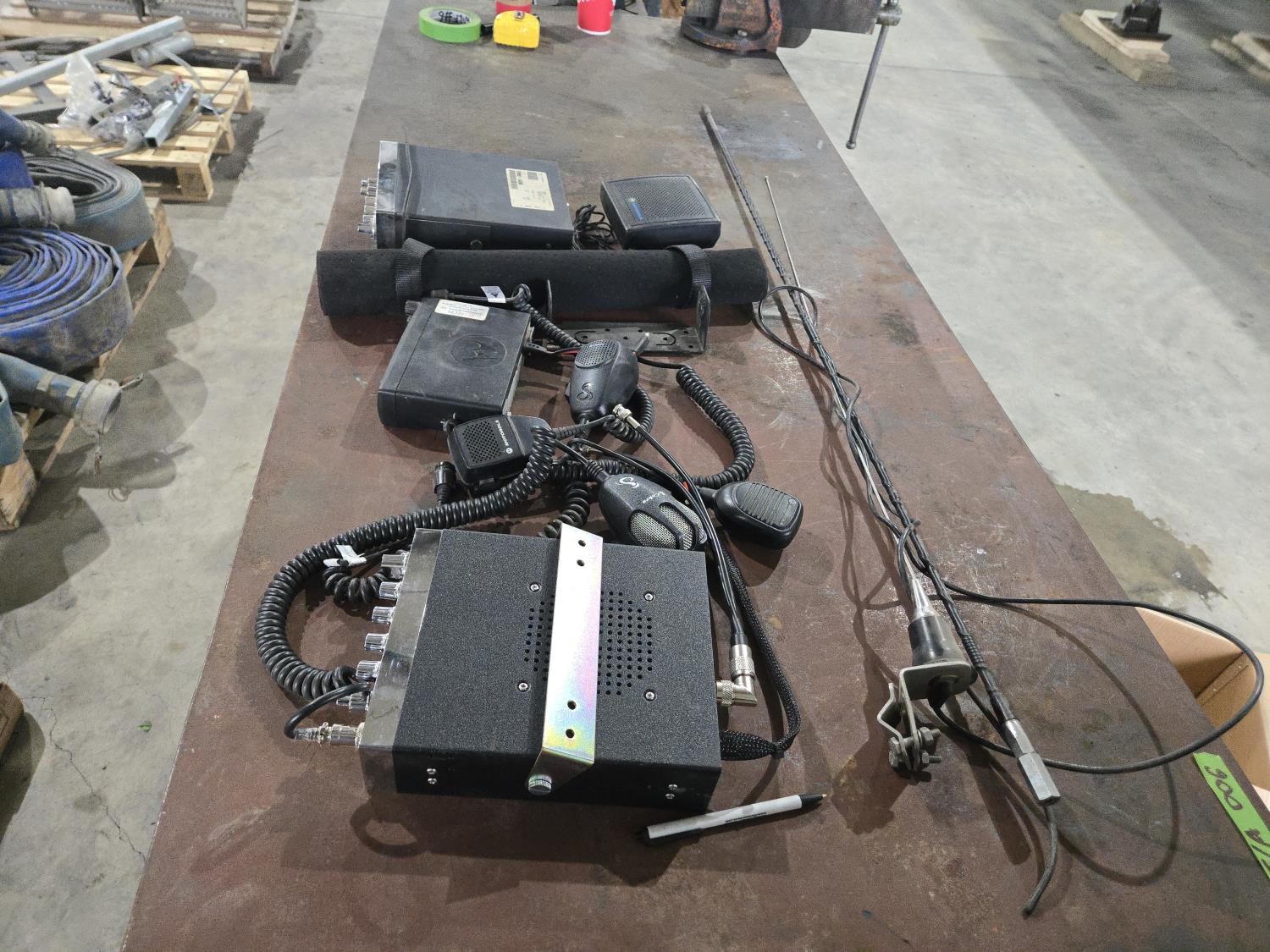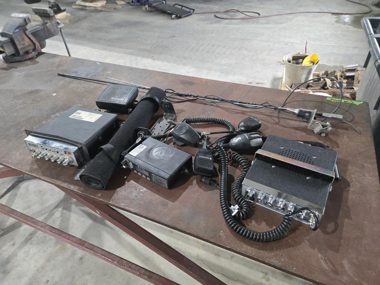 (2) Antenna's, (2) CB's, (1) Motorloa 2 way radio, (3) mics, (1) speaker