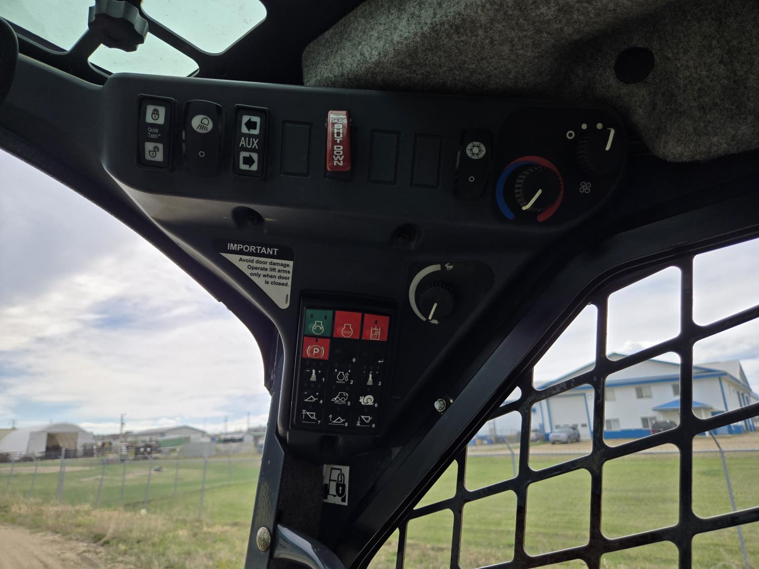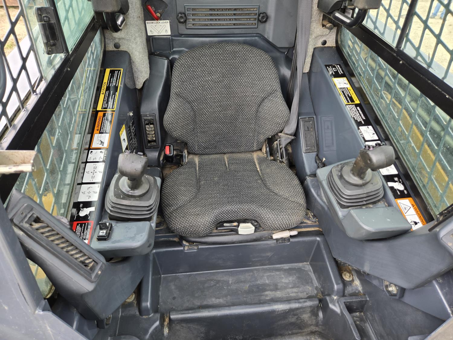 Enclosed cab, A/C, 2 speed transmission, 84 inch smooth bucket, electric Q/C coupler, 1 auxiliary hydraulics, 17.5 inch rubber tracks