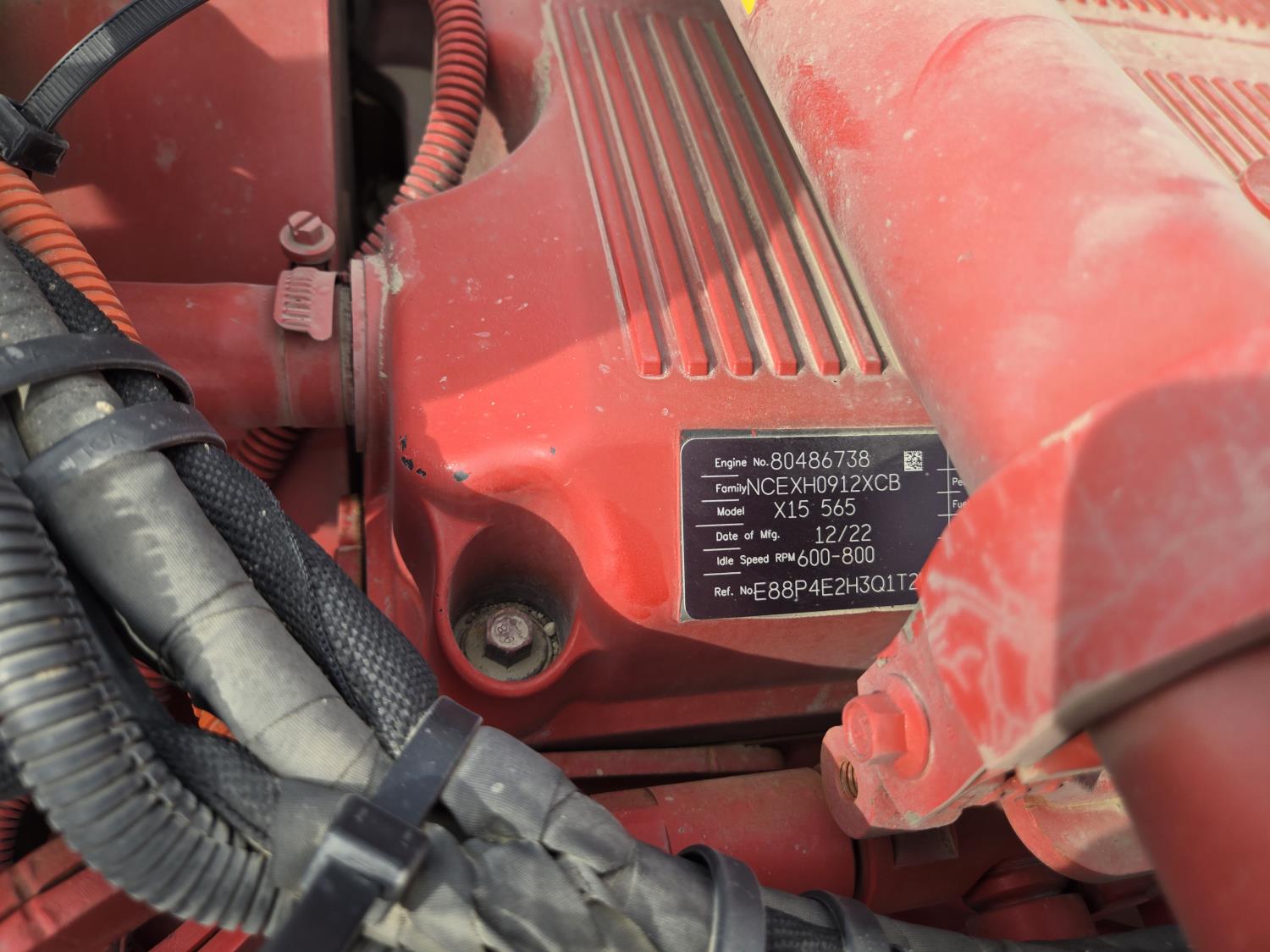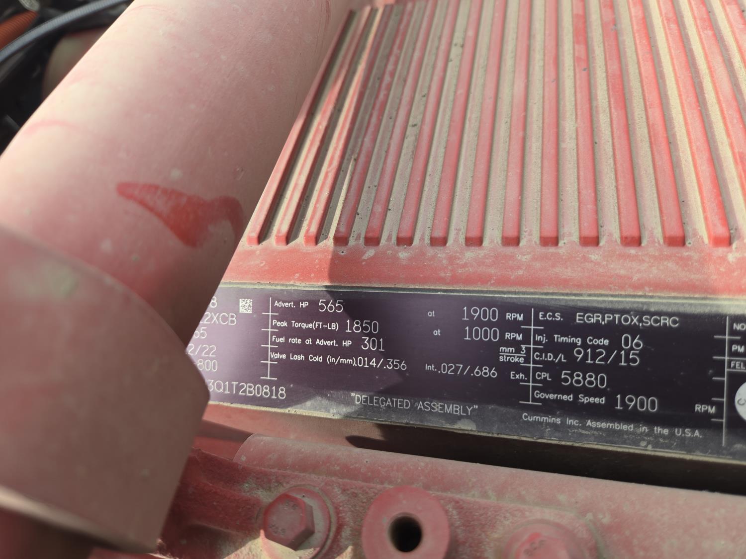 Cummins CX15 6 cylinder 565 HP engine, positive air shutoff, 18 speed manual transmission, P/W, P/L,, mid rise 48 inch sleeper, A/C, leather interior, air ride seats, hydraulic wet kit, beacons, heated tool boxes, air ride suspension, 16,000 lb front axle, 60,000 lb rear axles, full lockers, all aluminum wheels, 385/65R22.5 front tires, 11R24.5 rear tires