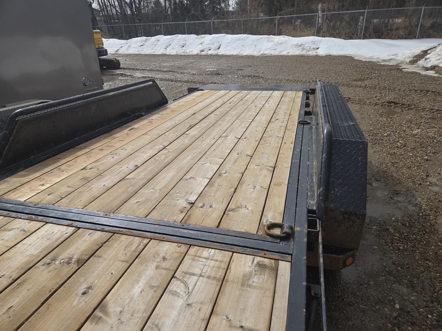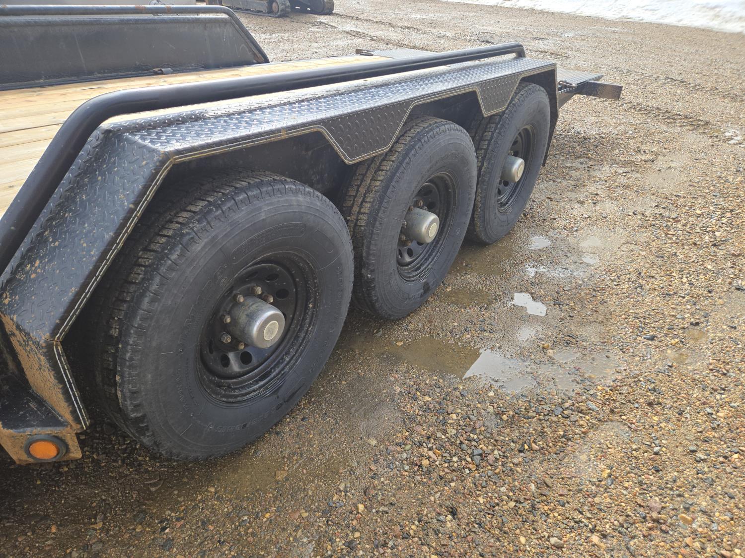 83 inch wide deck, 16.5 ft tilt deck, wood deck, electric brakes, torsion suspension, ball hitch, tool / storage box, rub rails, stake pockets, 7000 lb axles, 235/85R16 tires