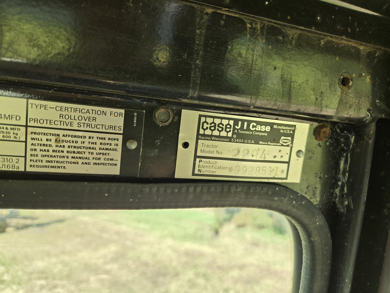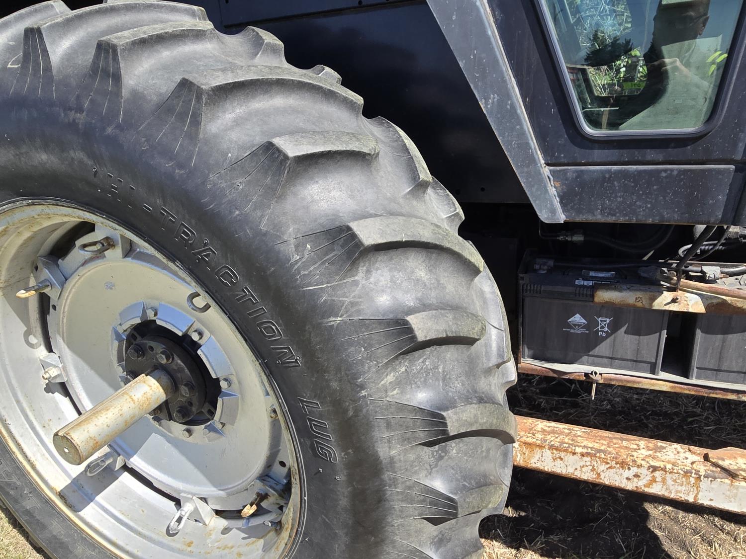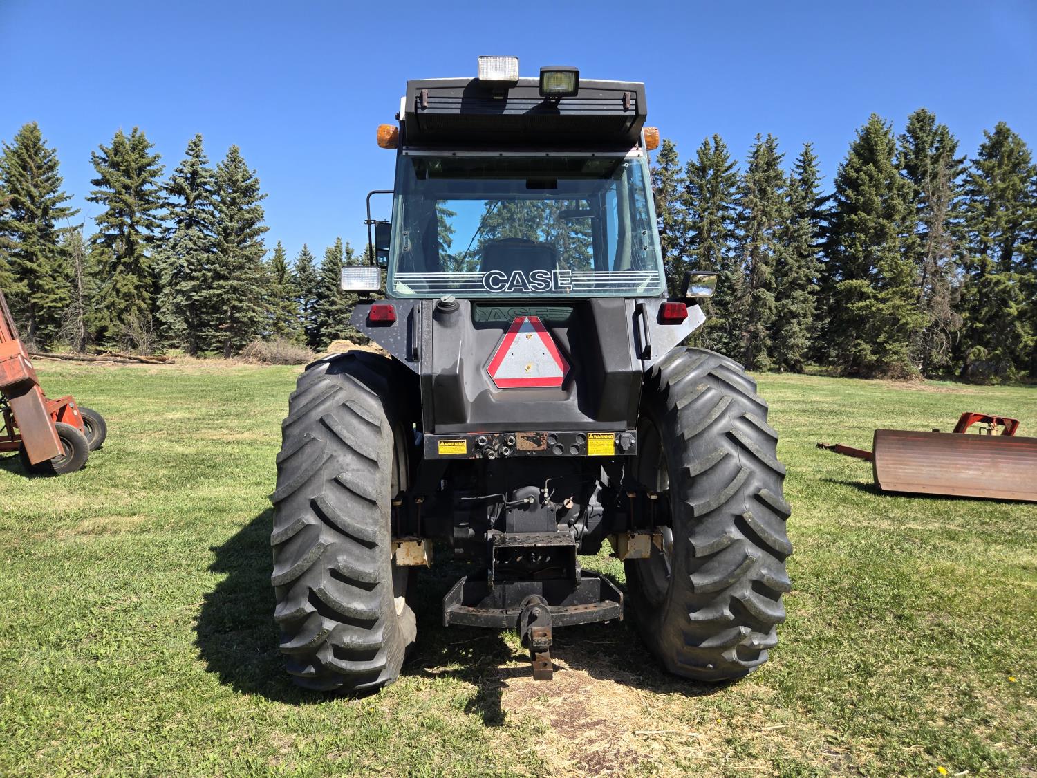 Case 90 loader, bucket, Case 8.3 L 6 cylinder 154 HP, diesel engine, 12 speed partial power shift transmission, cab, rear differential lock, A/C, radio, 540/1000 PTO, 2 rear hydraulic outlets, 11L-16.1 front tires, 18.4-38 rear tires