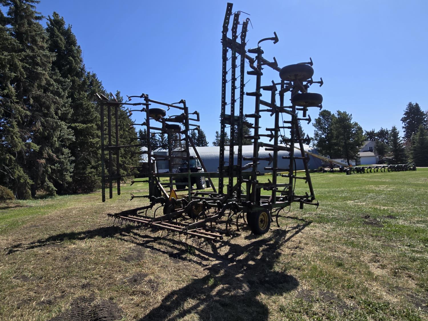 6 inch spacing, 9 inch sweeps, spring tooth harrows, walking axles on main frame, walking axles on wings, 7.60-15 tires