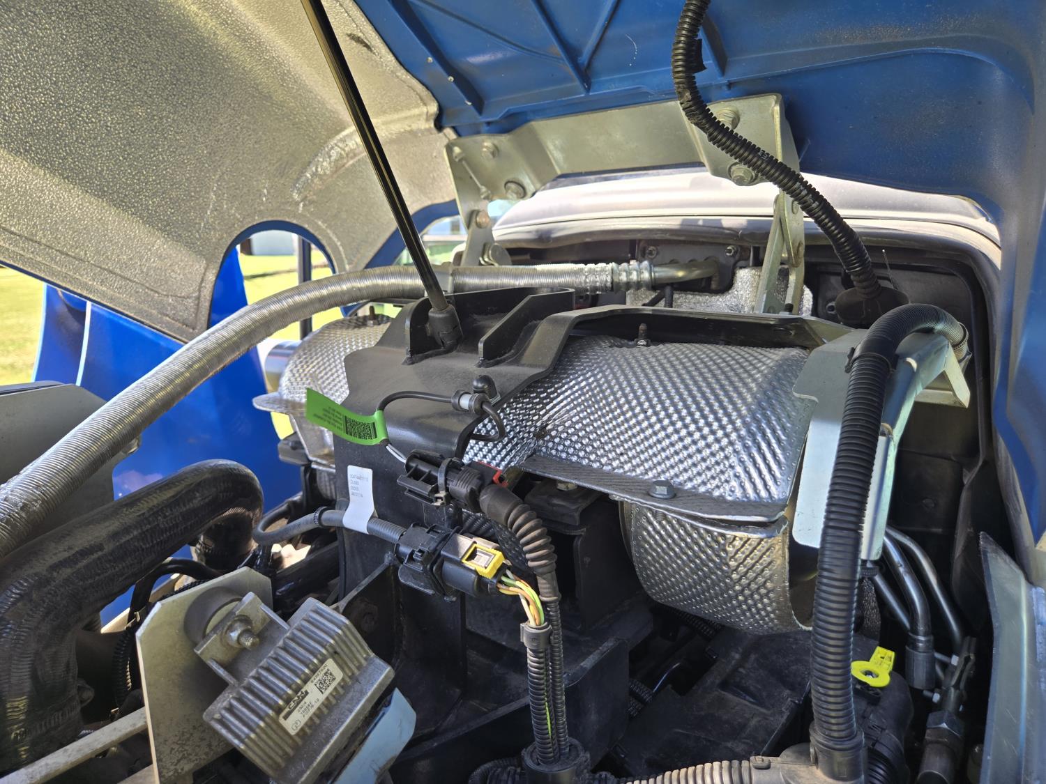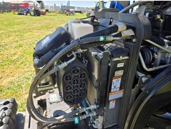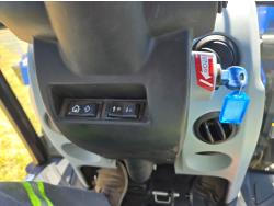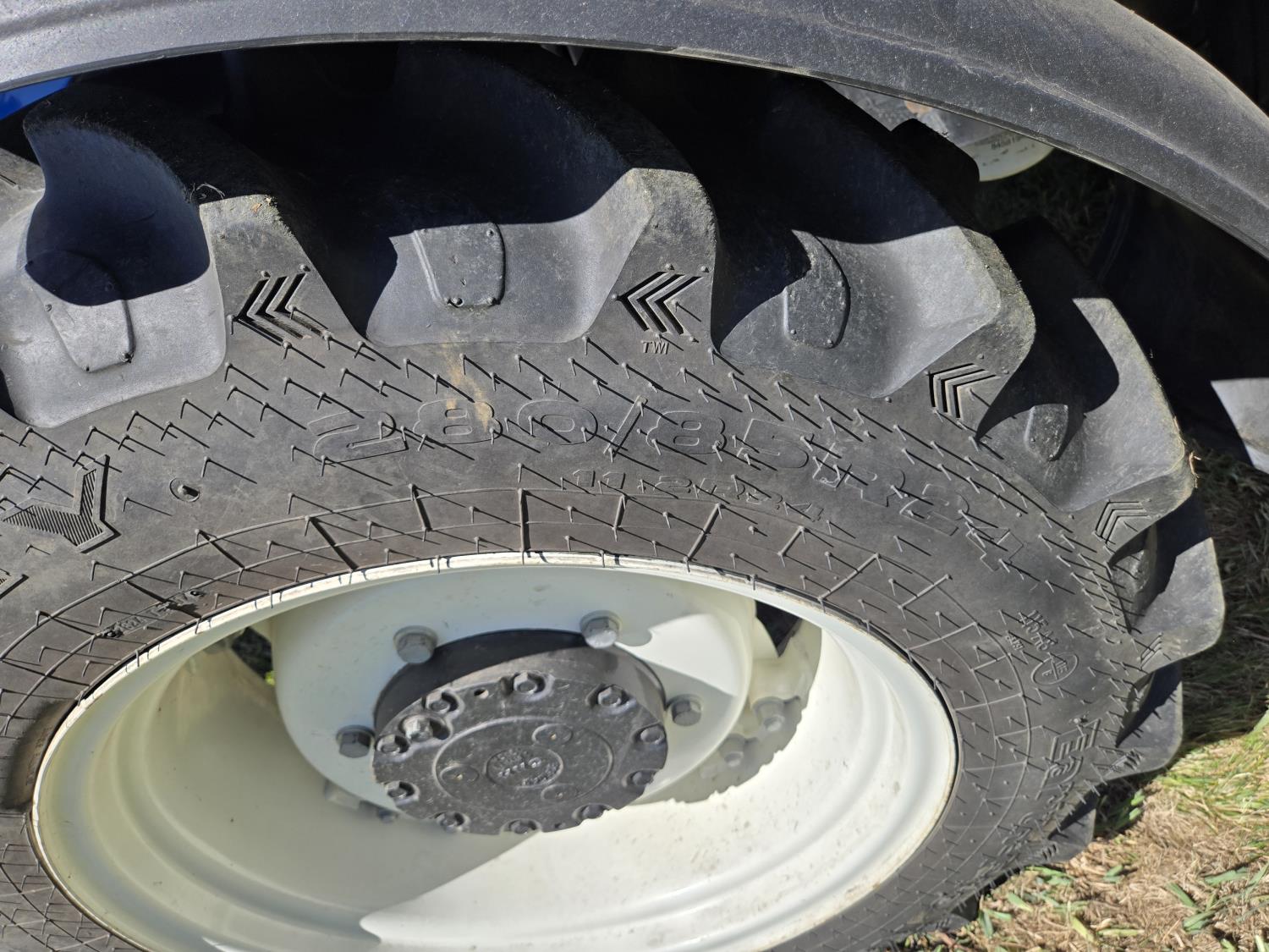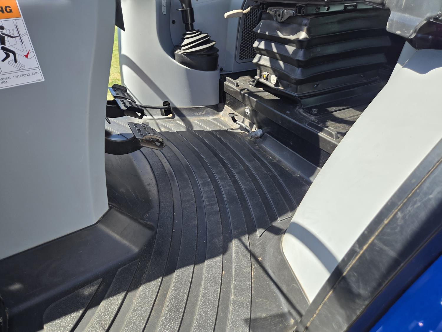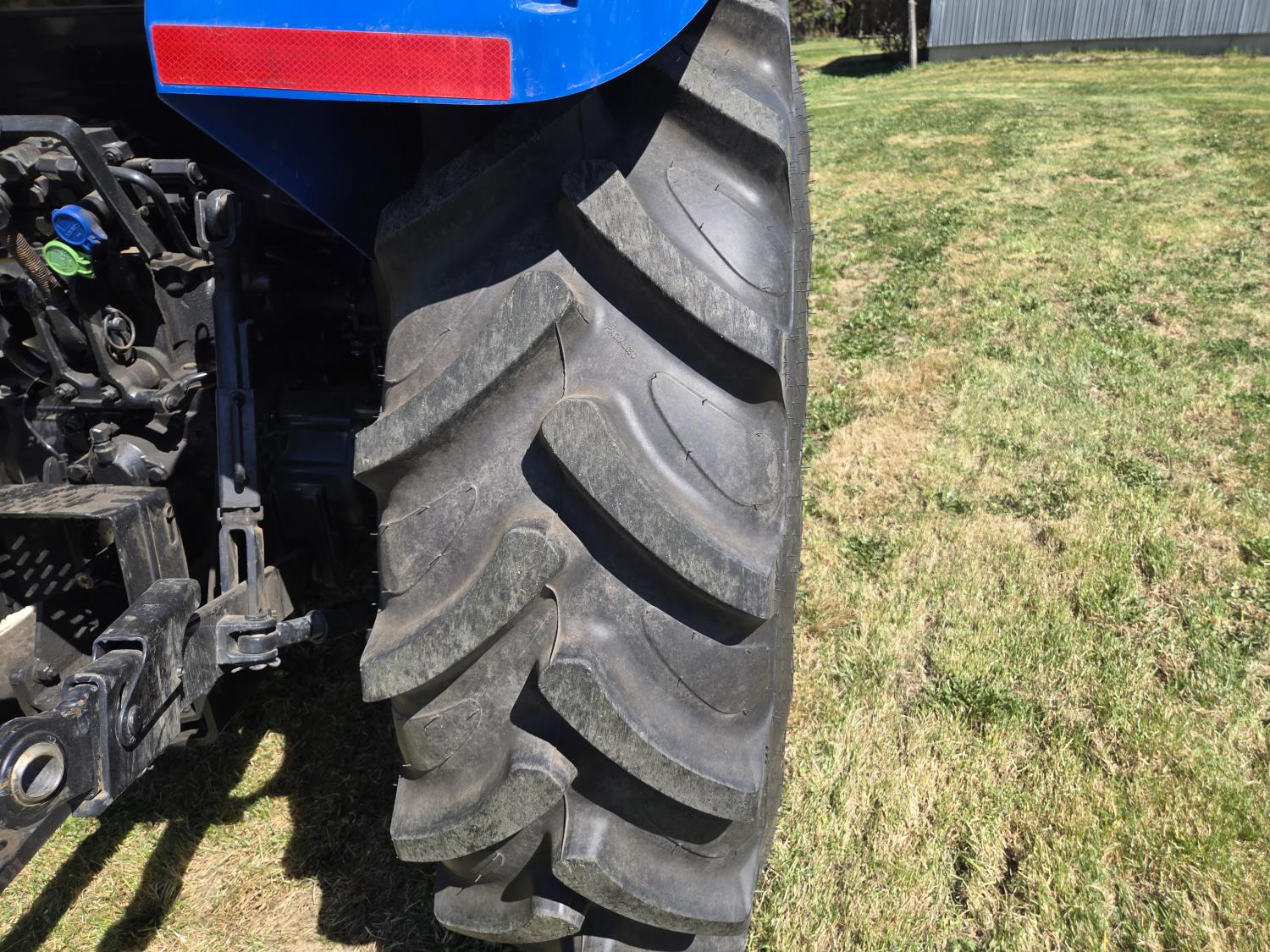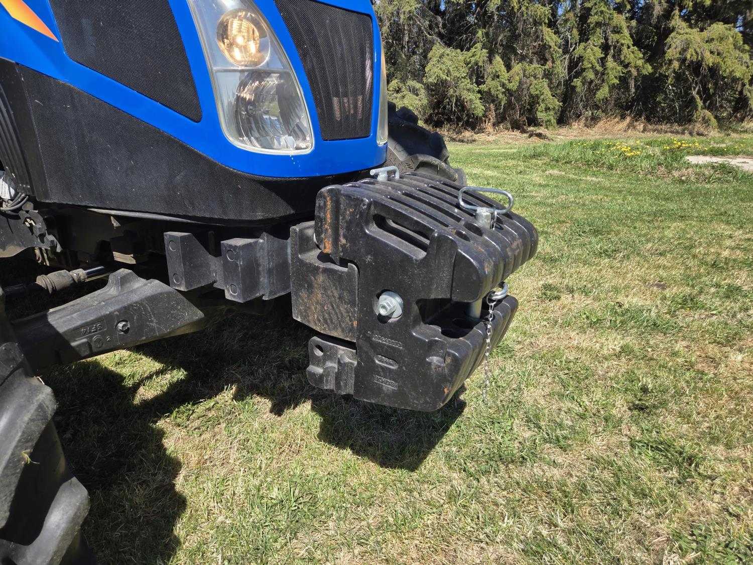 New Holland 655TL loader, Q/A, 72 inch bucket, mid mount hydraulic connection, FPT 3.2 L 4 cylinder 74 HP, diesel engine, 12 speed manual transmission, cab, shuttle shift, rear differential lock, joystick, A/C, radio, buddy seat, front weights, 540 PTO, 3 point hitch, 2 rear hydraulic outlets, rear wheel weights, 280/85R24 front tires, 420/895R30 rear tires, front fenders, front weights
