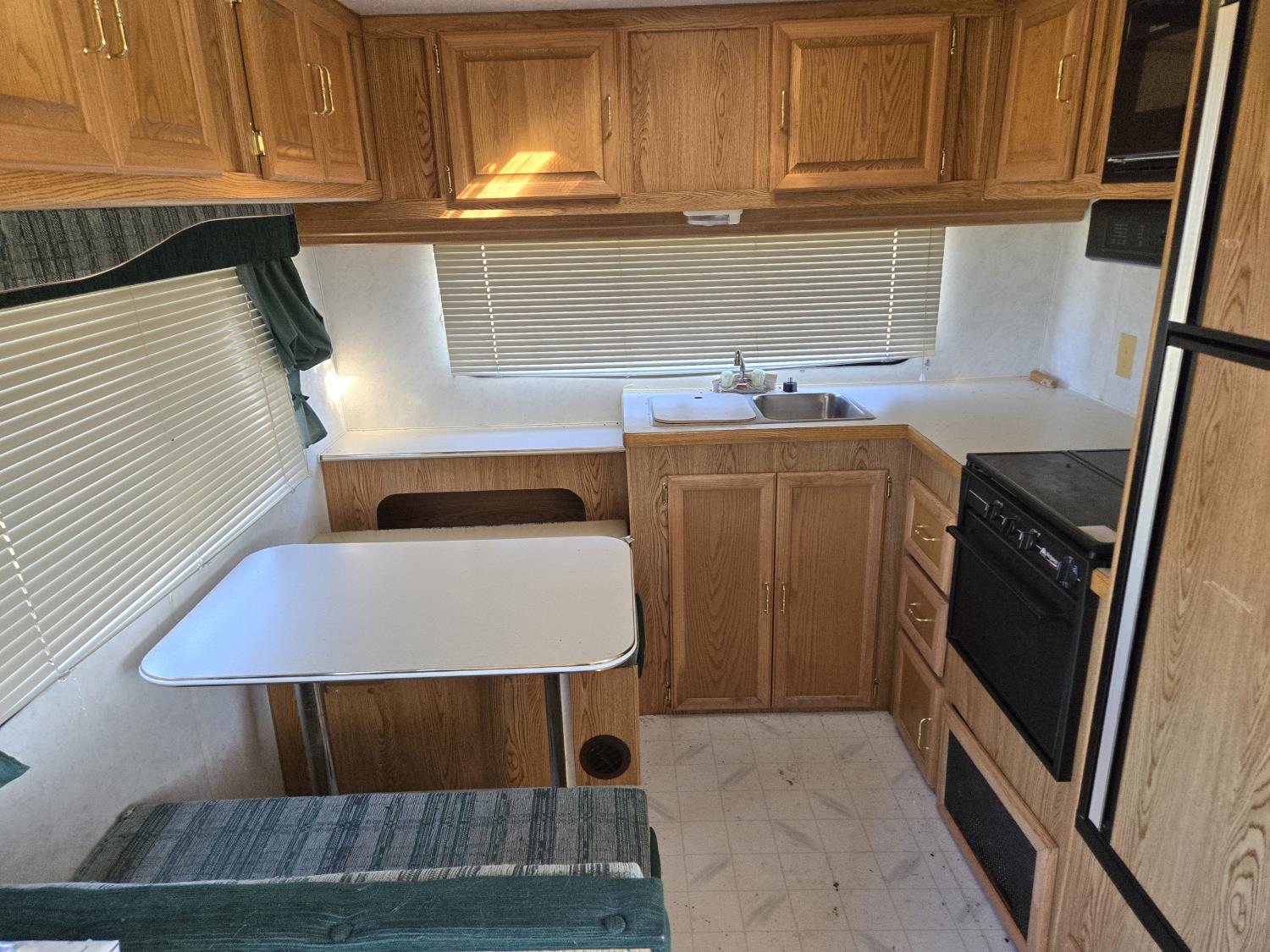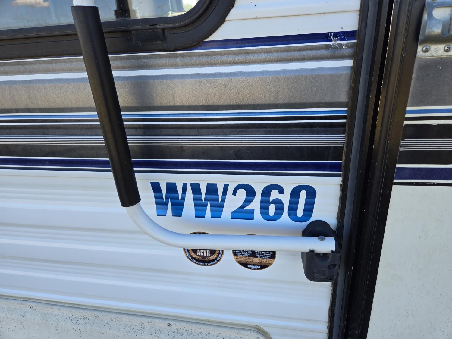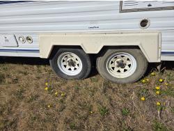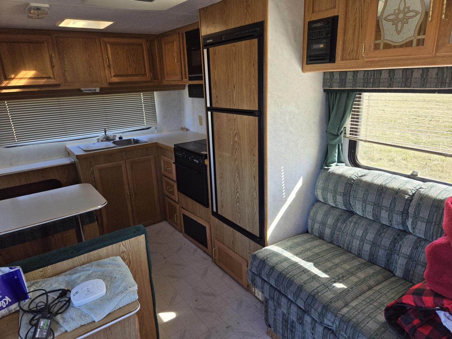 Sleeps 6, stove, fridge, microwave, full bath, master bedroom, manual awning, spring suspension, 225/75R15 tires