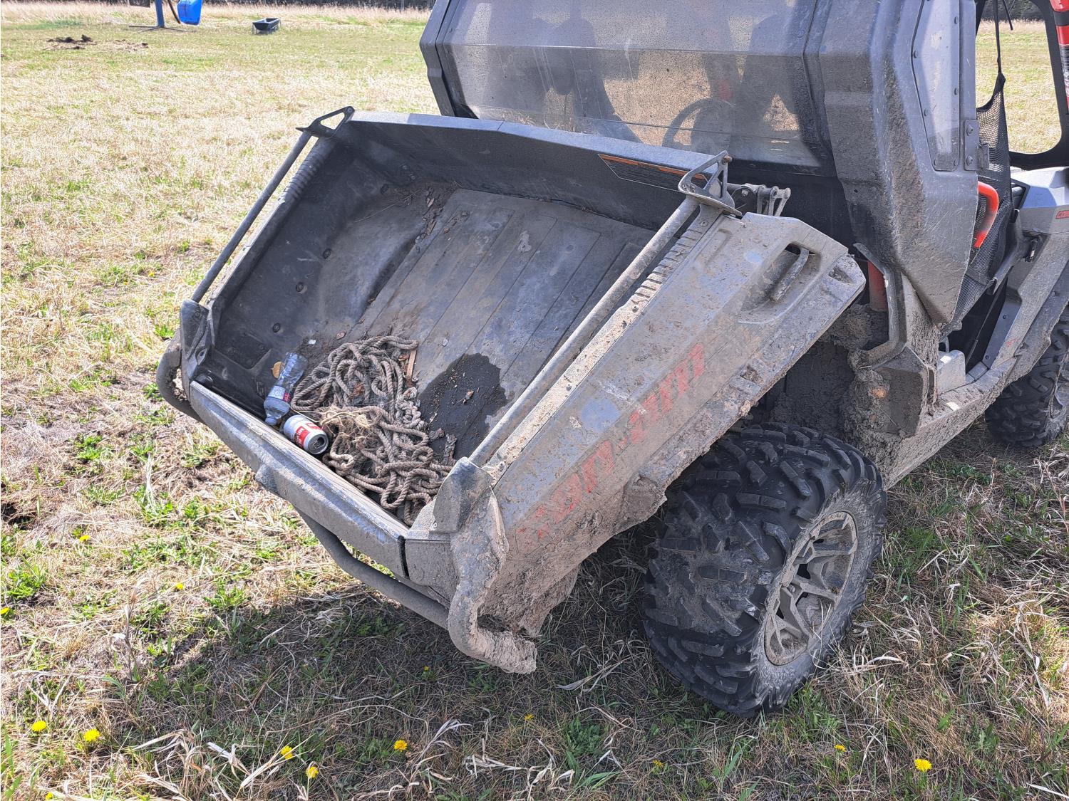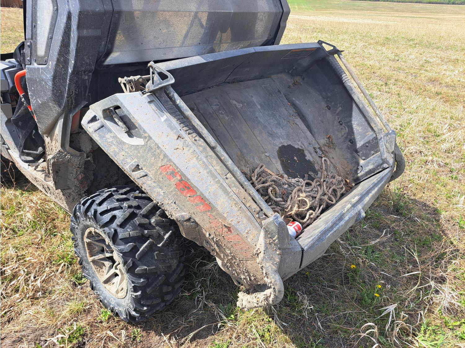 976 cc water cooled engine, automatic transmission, Hi/Lo range, reverse, 2 passengers, front winch, manual dump box, receiver hitch, independent suspension, 27X9.00R14 front tires, 27X11.00R14 rear tires
