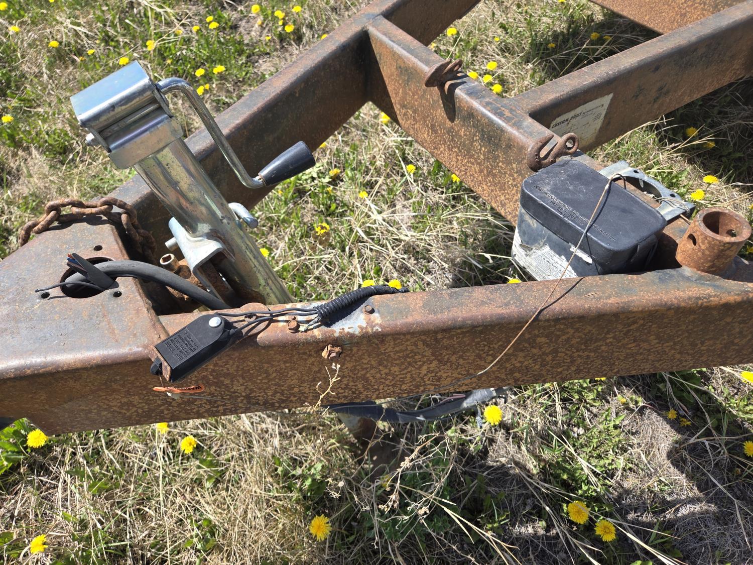 wood deck, spring suspension, ball hitch, rub rails, stake pockets