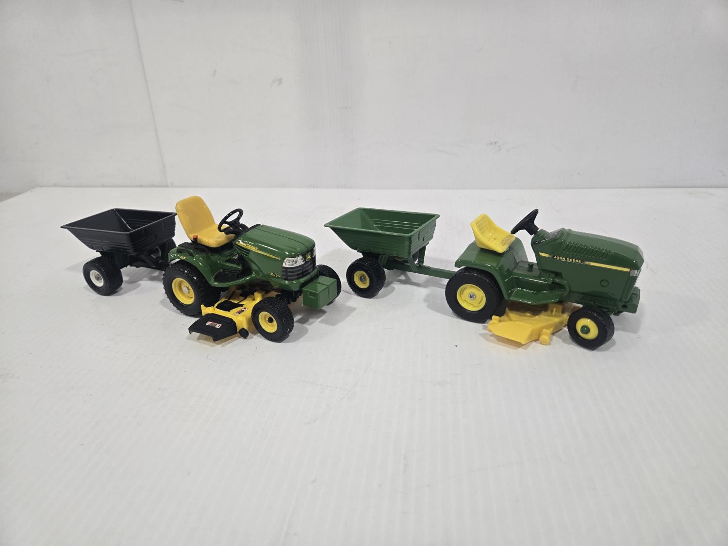 3413 (2) John Deere Lawn Tractors, (2) Garden Trailers