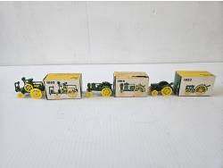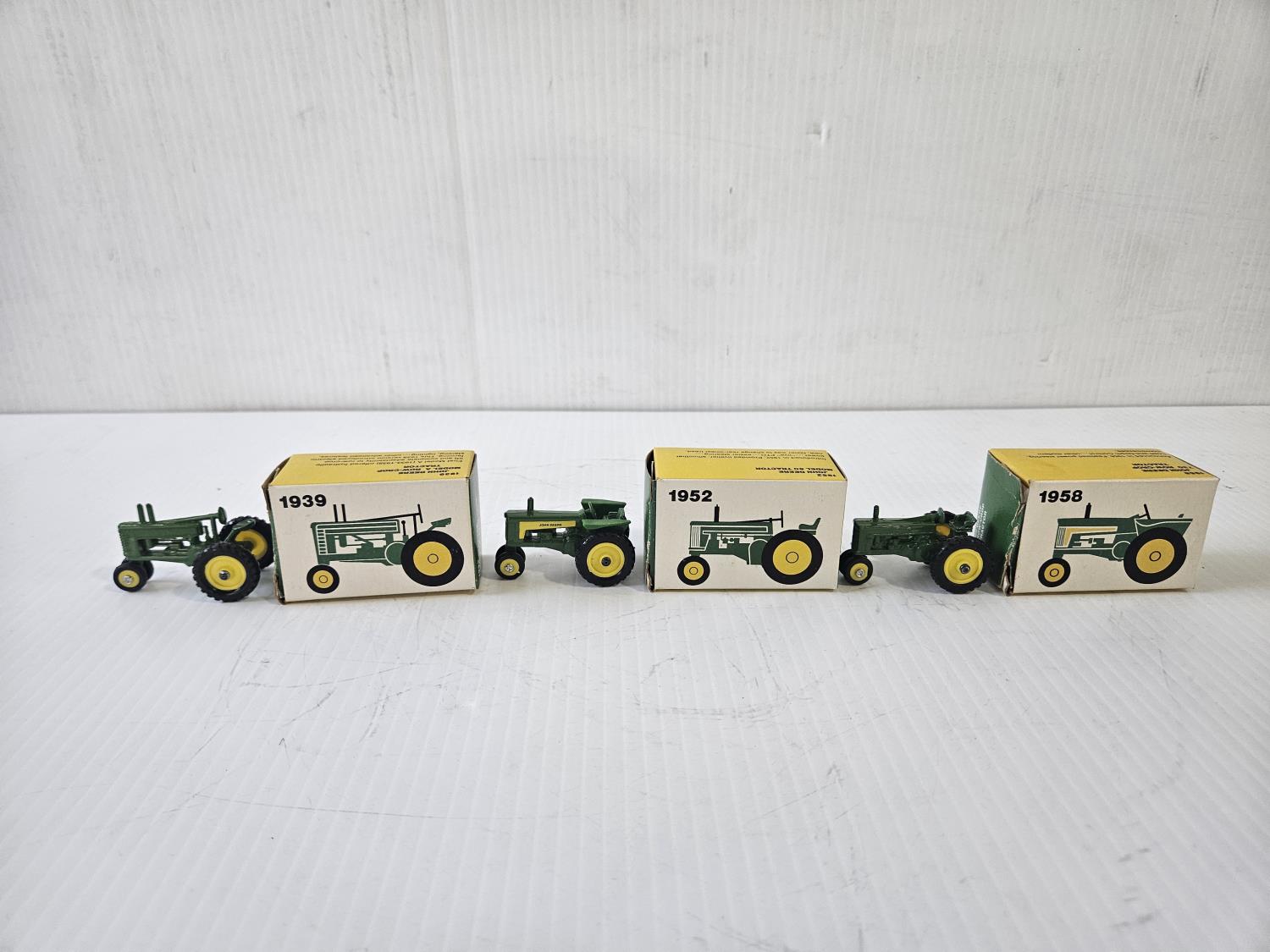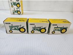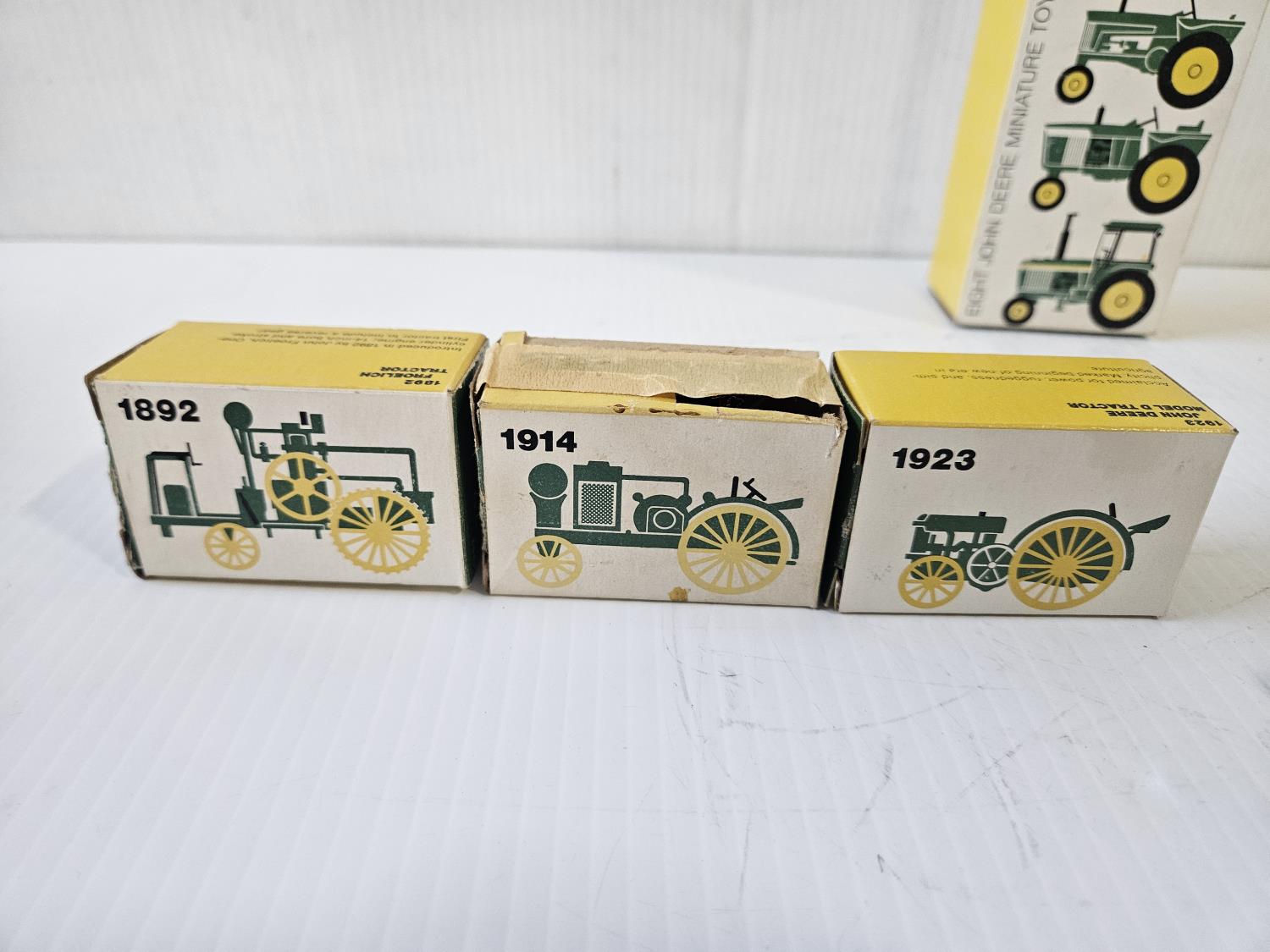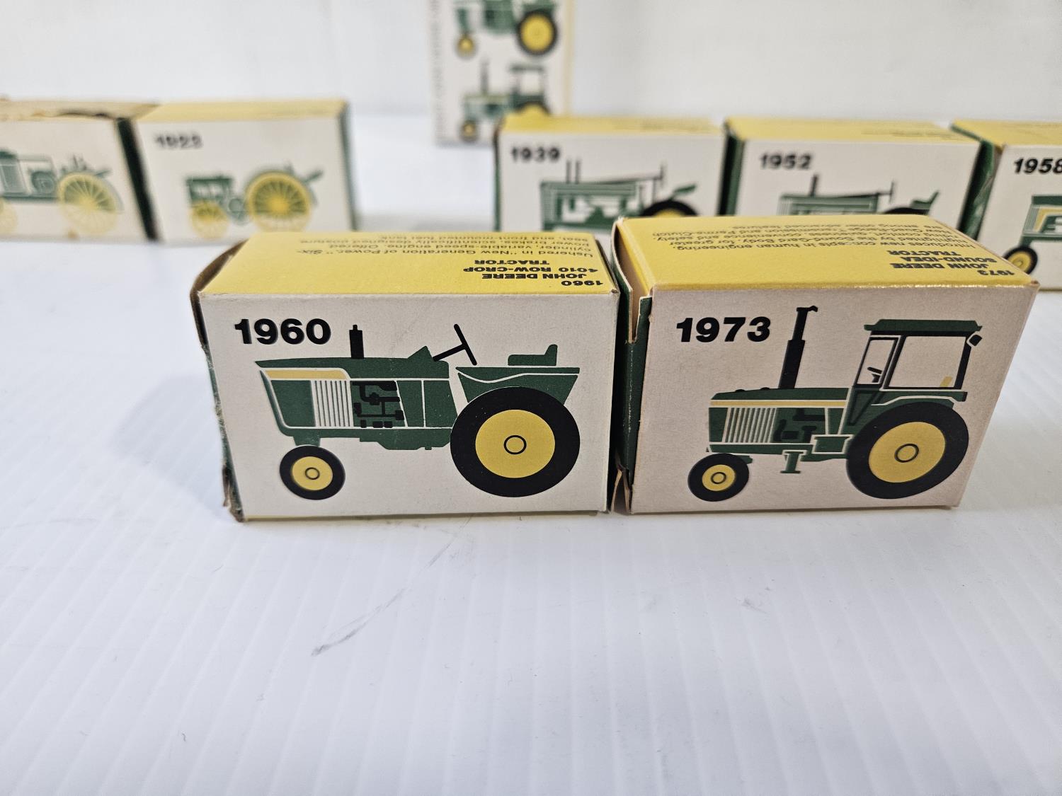 1892 Froelich, 1914 Waterloo Boy, 1923 Model D, 1939 Model a Row Crop, 1952 Model 60, 1958 730 Row Crop, 1960 4010 Row Crop, 1973 Sound Idea Tractor series, original boxes