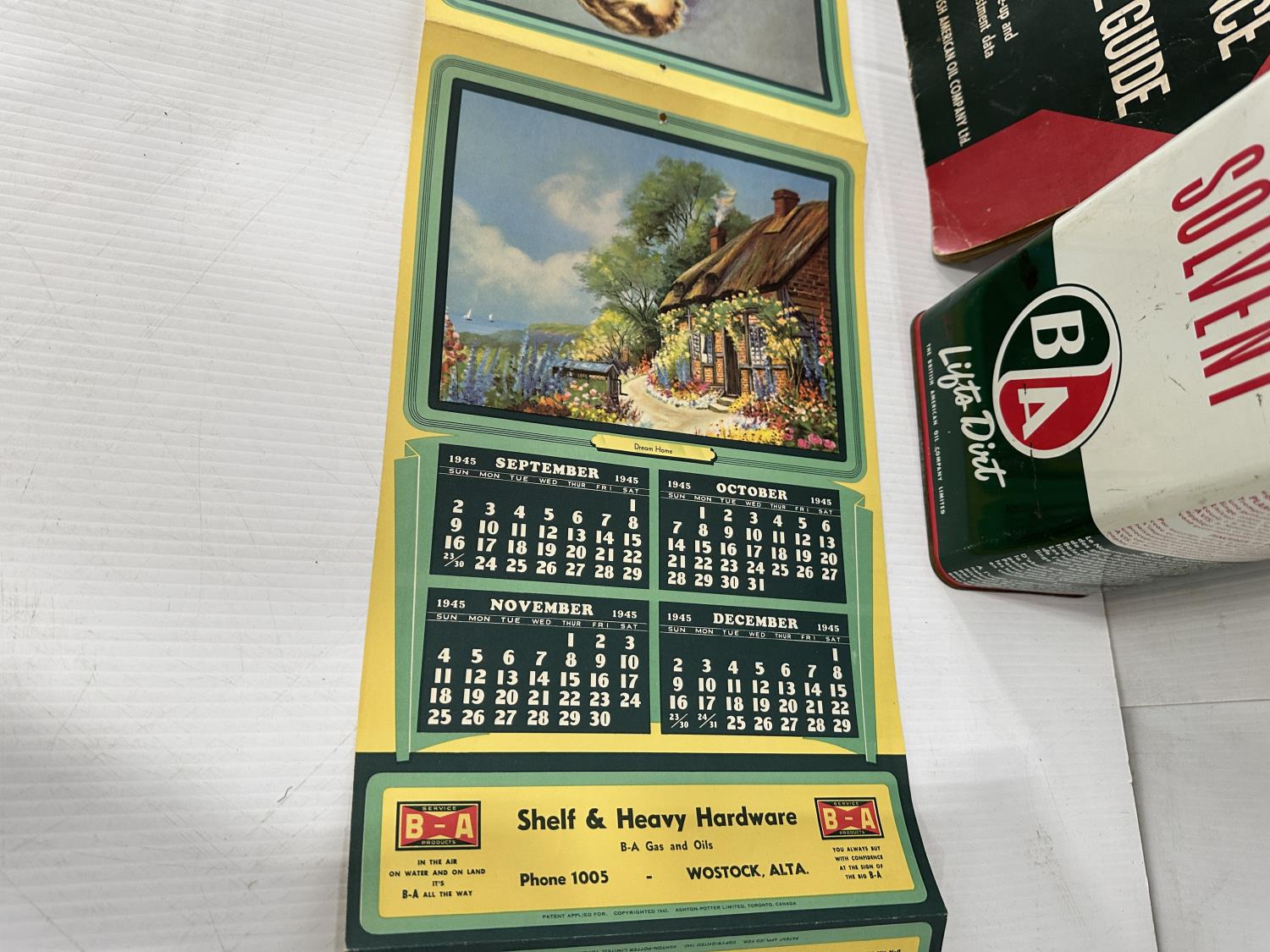 3666 British American Solvent Can, Service Guide and 1945 Wall Calender