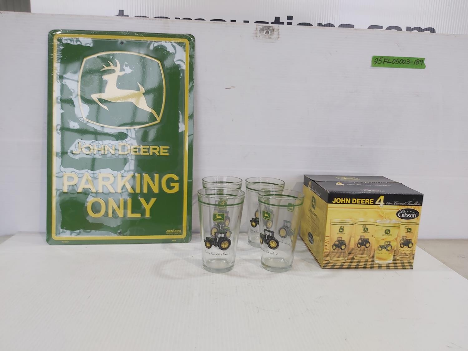 3747 John Deere Paarking Sign with John Deere Tumblers with Box