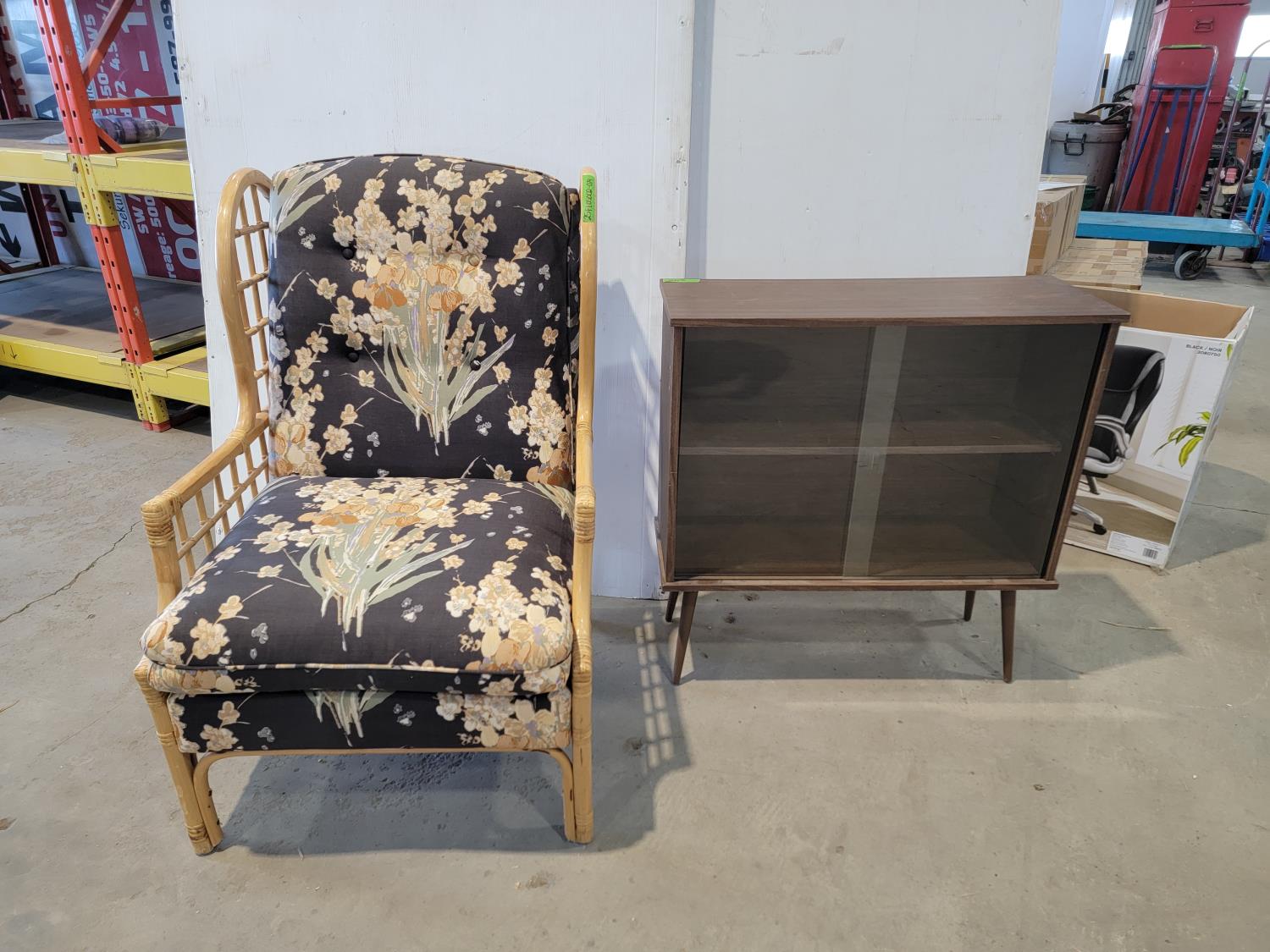 3906 Rattan Lounge Chair and Glass Door Cabinet