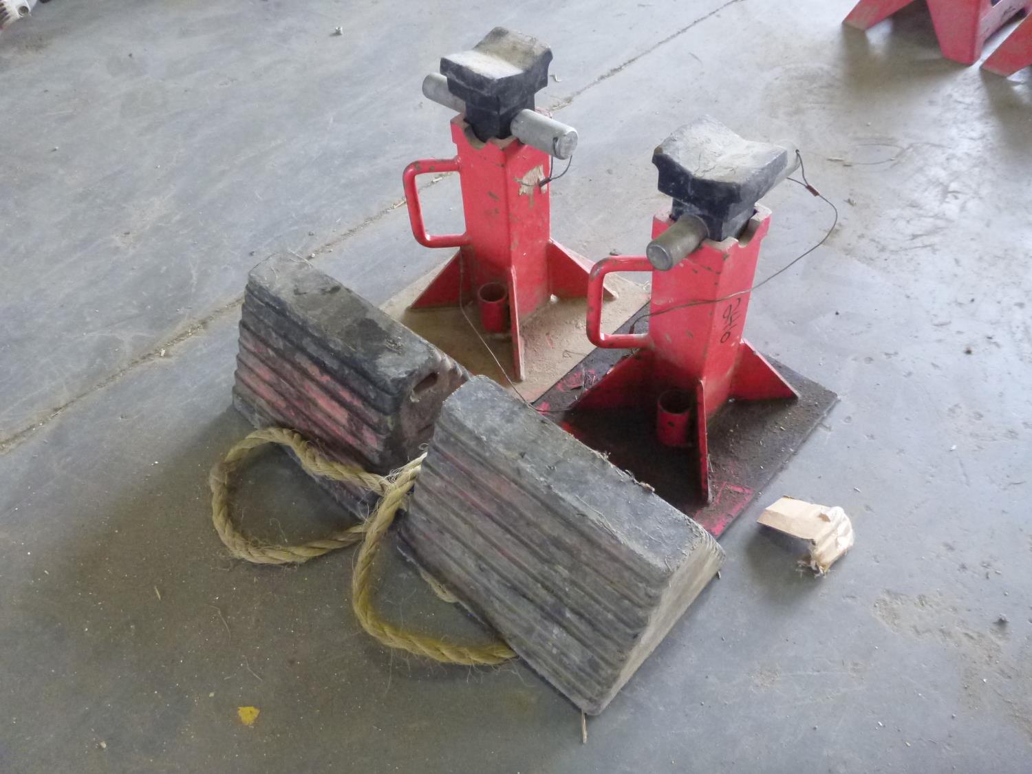 92 (2) 22 Ton Jack Stands & wheel chocks