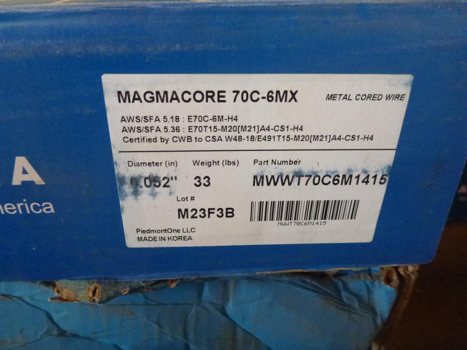 184 (3) Rolls of Magmacore 70C-6Mx 33 lb Metal Core Welding Wire (Unused)