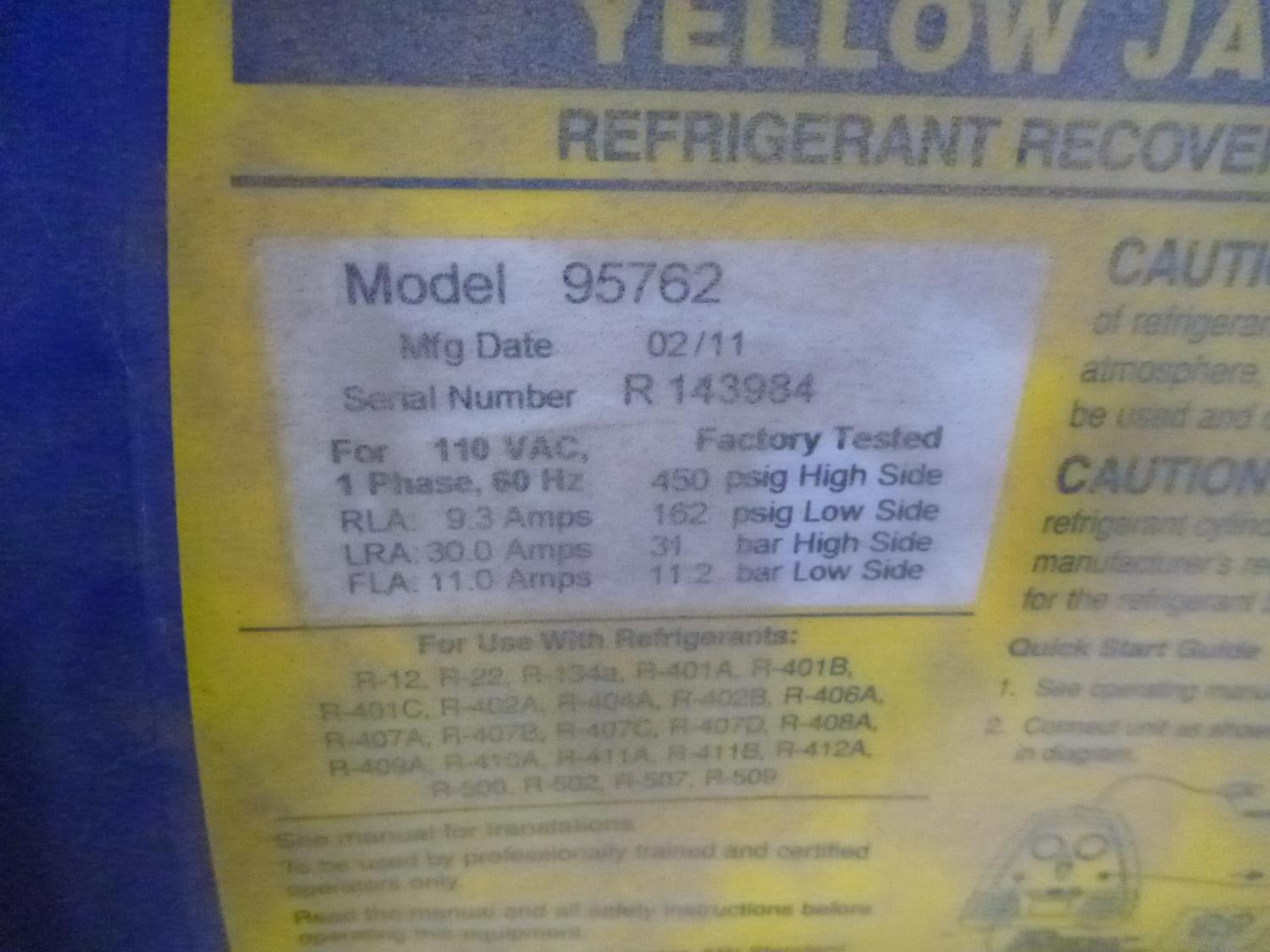 71 Yellow Jacket Refrigerant Recovery System