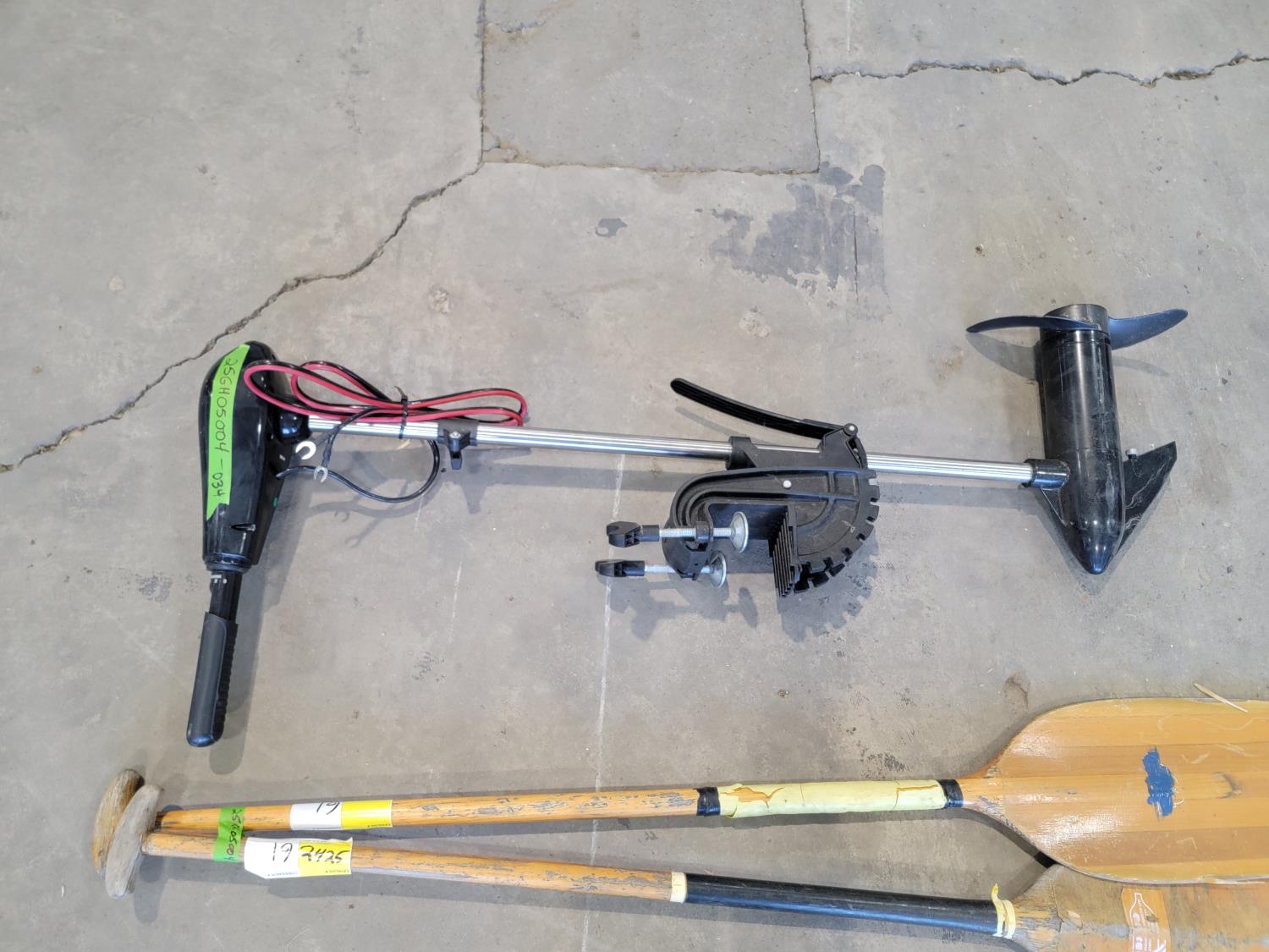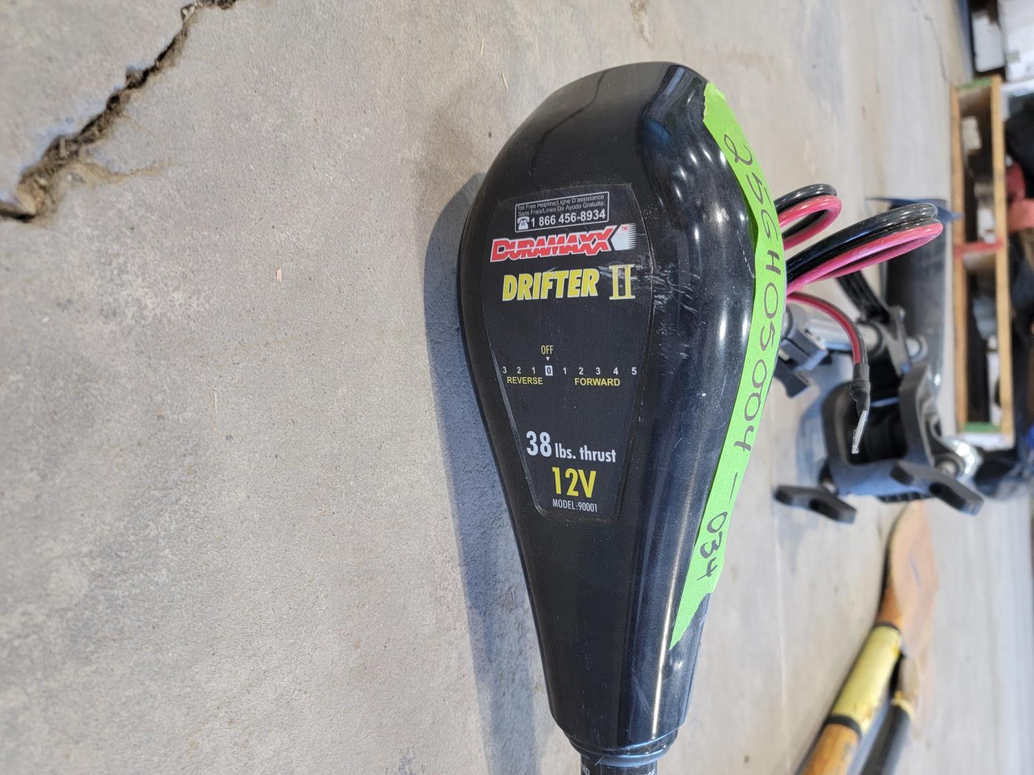 1295 Duramaxx Drifter II 12V Boat Motor and (2) Wooden Paddles