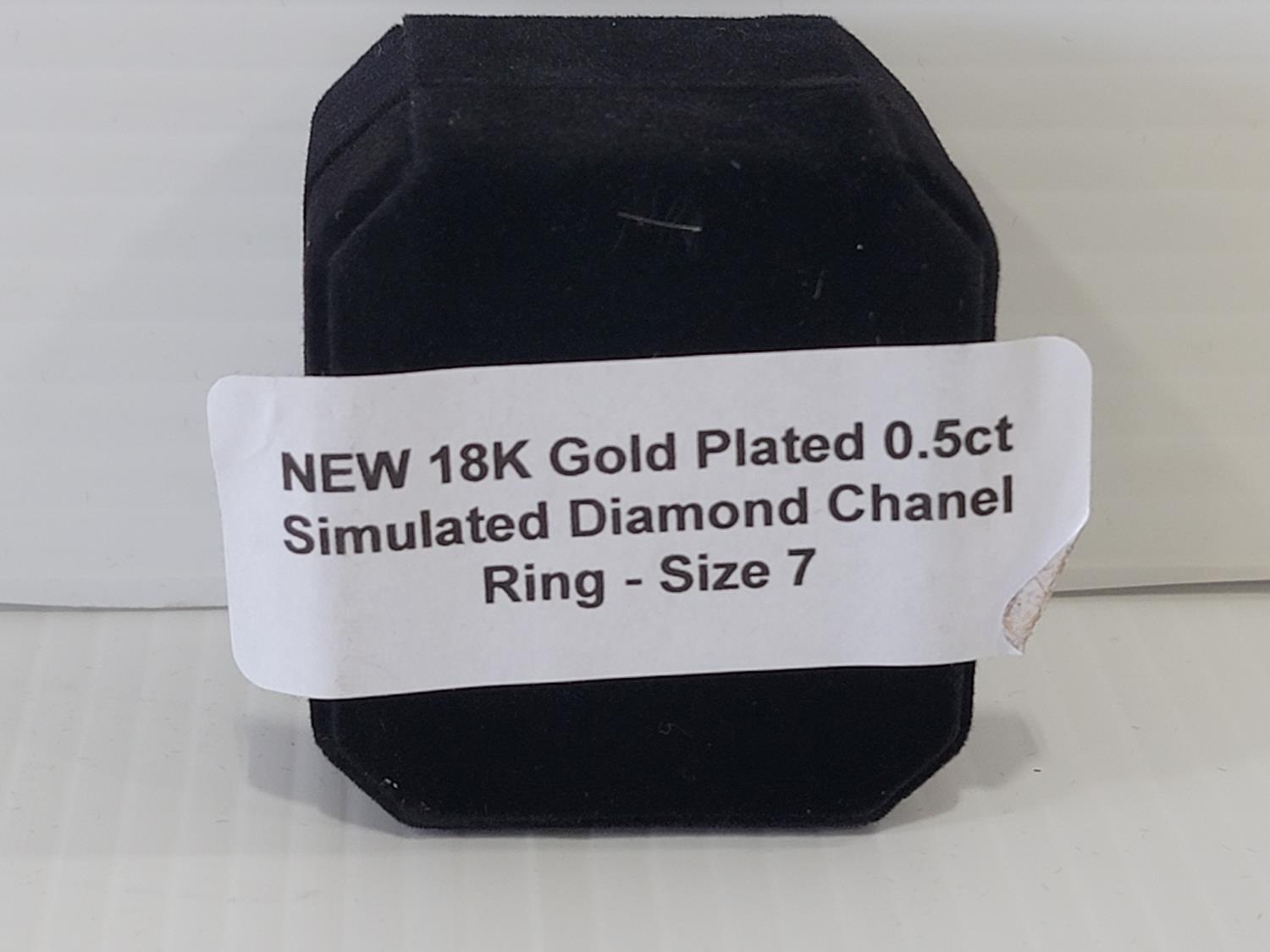 1545 Smartlife 18K Gold Plated 0.5 Ct Simulated Diamond Chanel Ring - Size 7 (Unused)