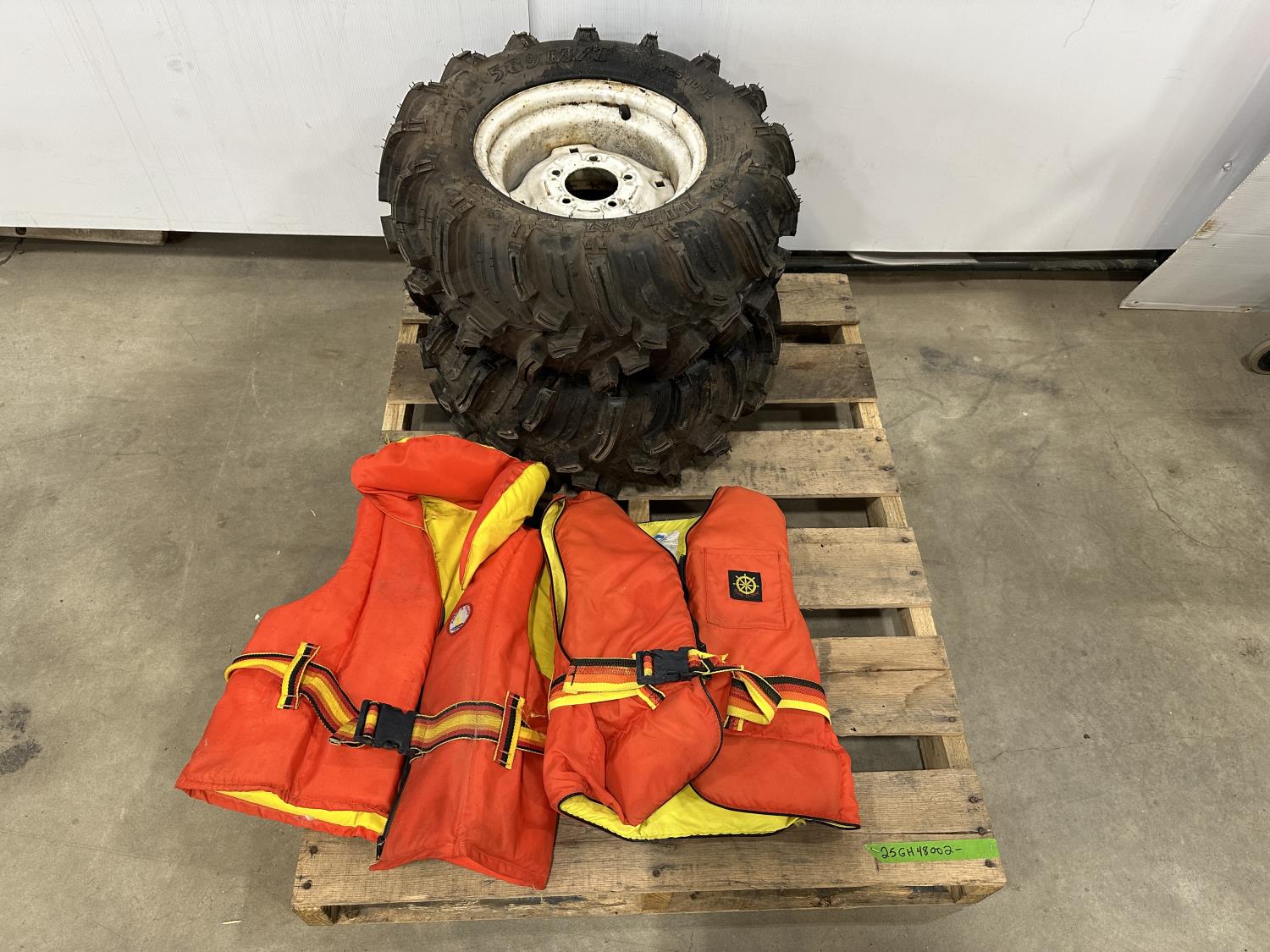 1283 (2) 25X10-12 Tires On Rims and (2) Life Jackets