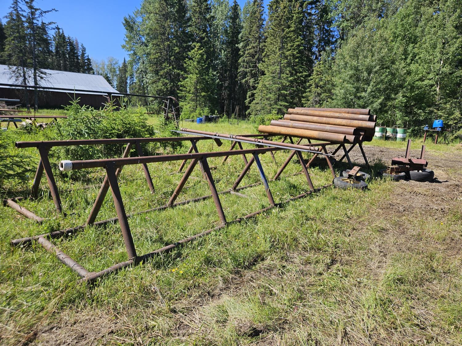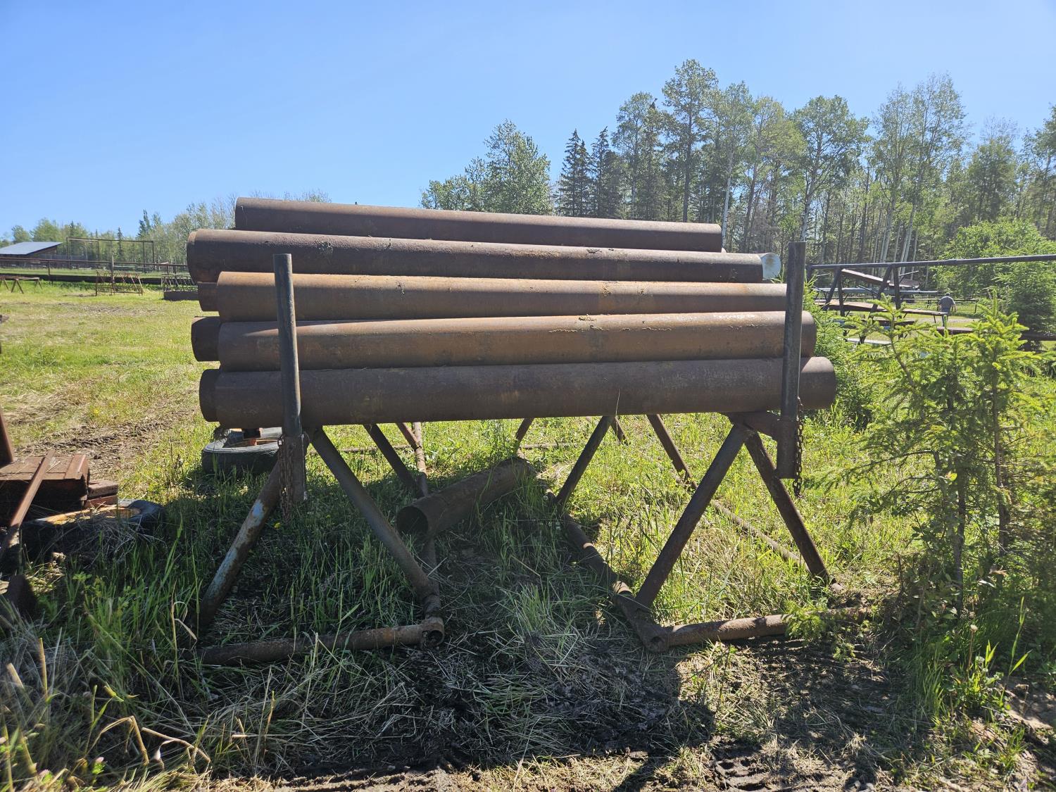 1741 (2) 30 Ft Pipe Racks W/ (33±) 8 Inch X 8 Ft Cut Offs