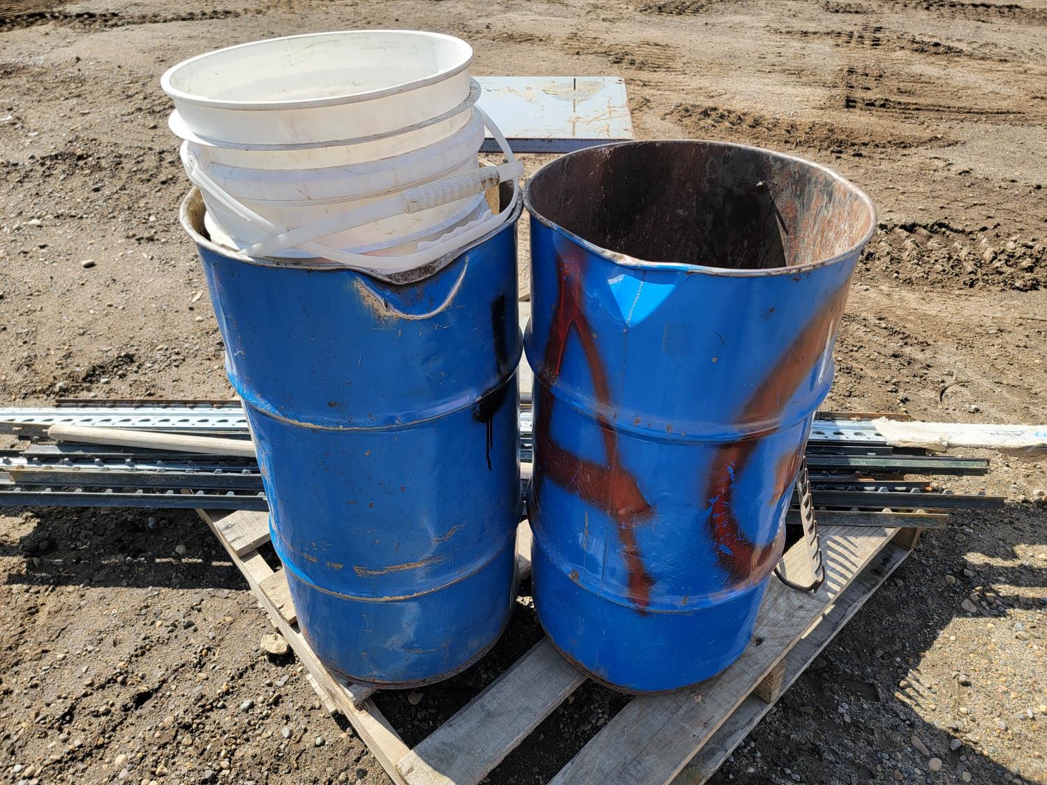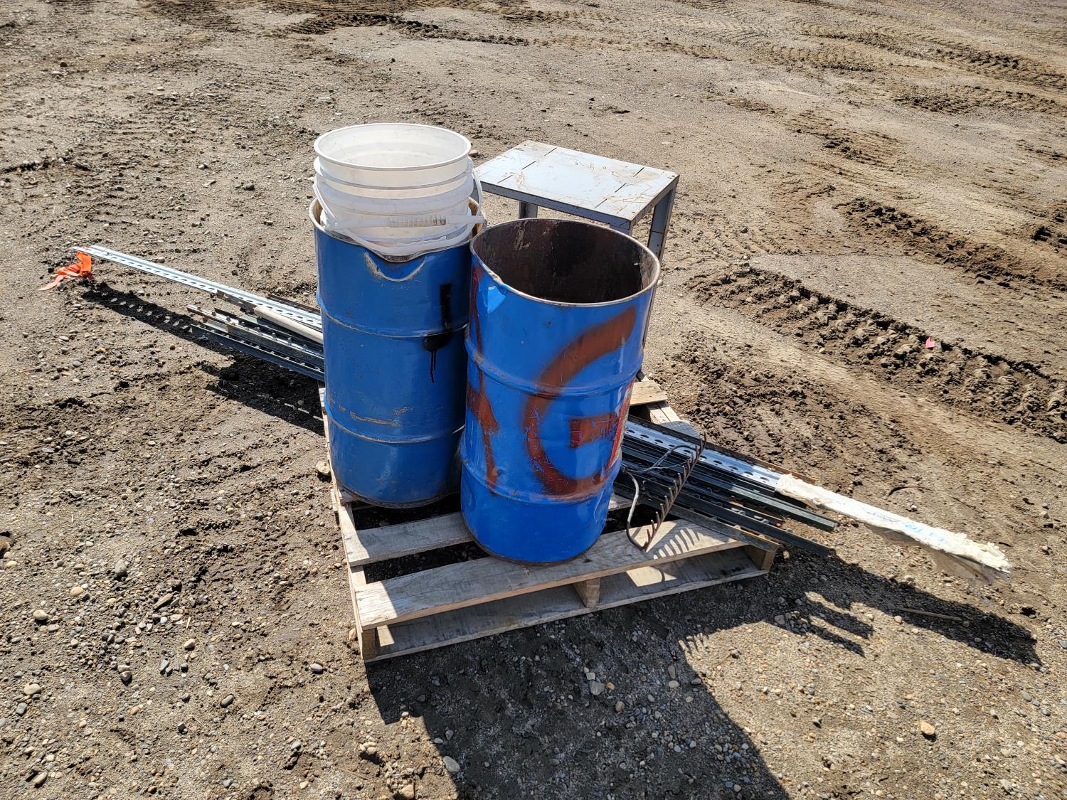 1651 (2) Metal Barrels, Metal Stand and Qty of Metal Fence Posts