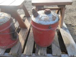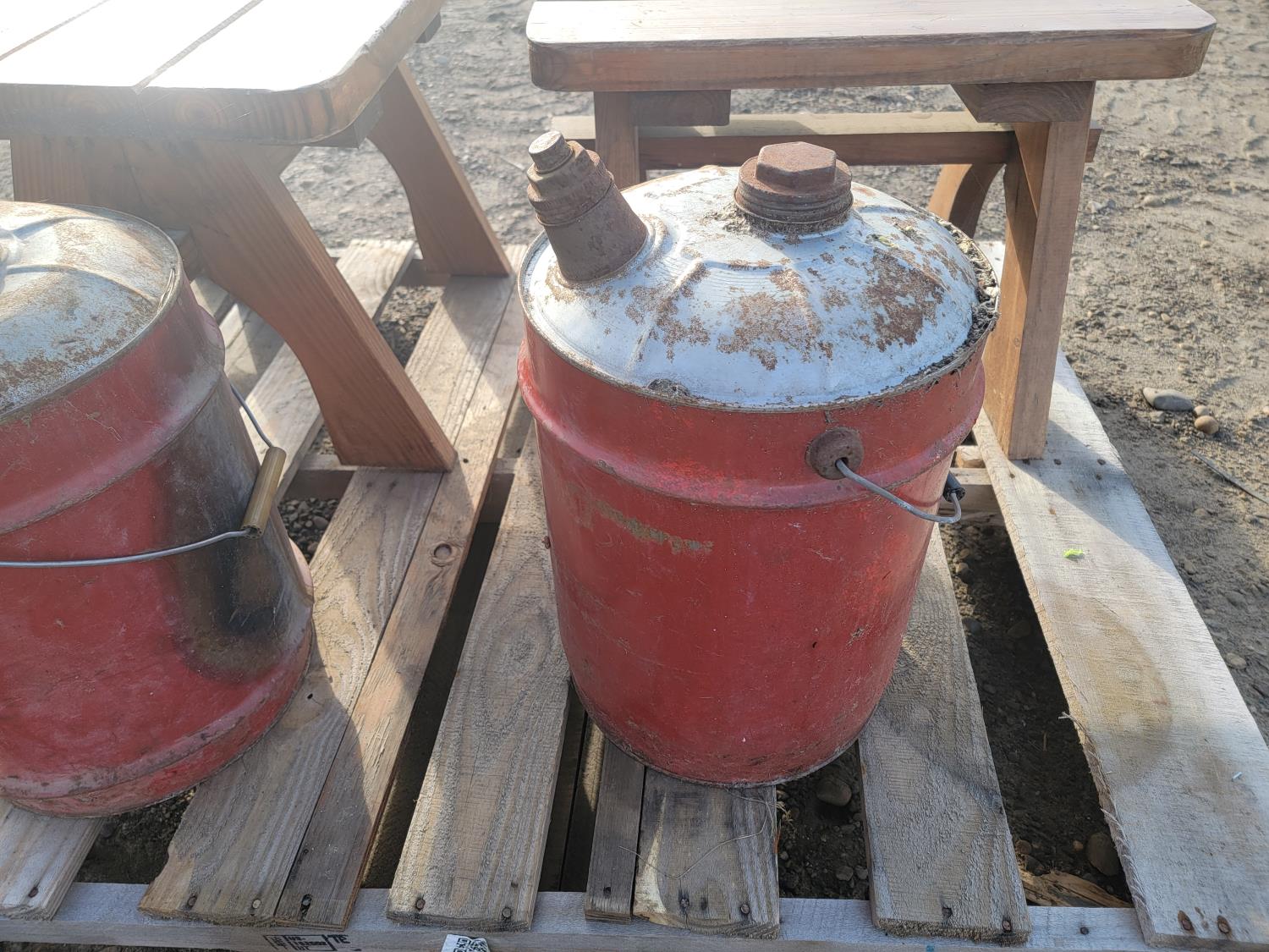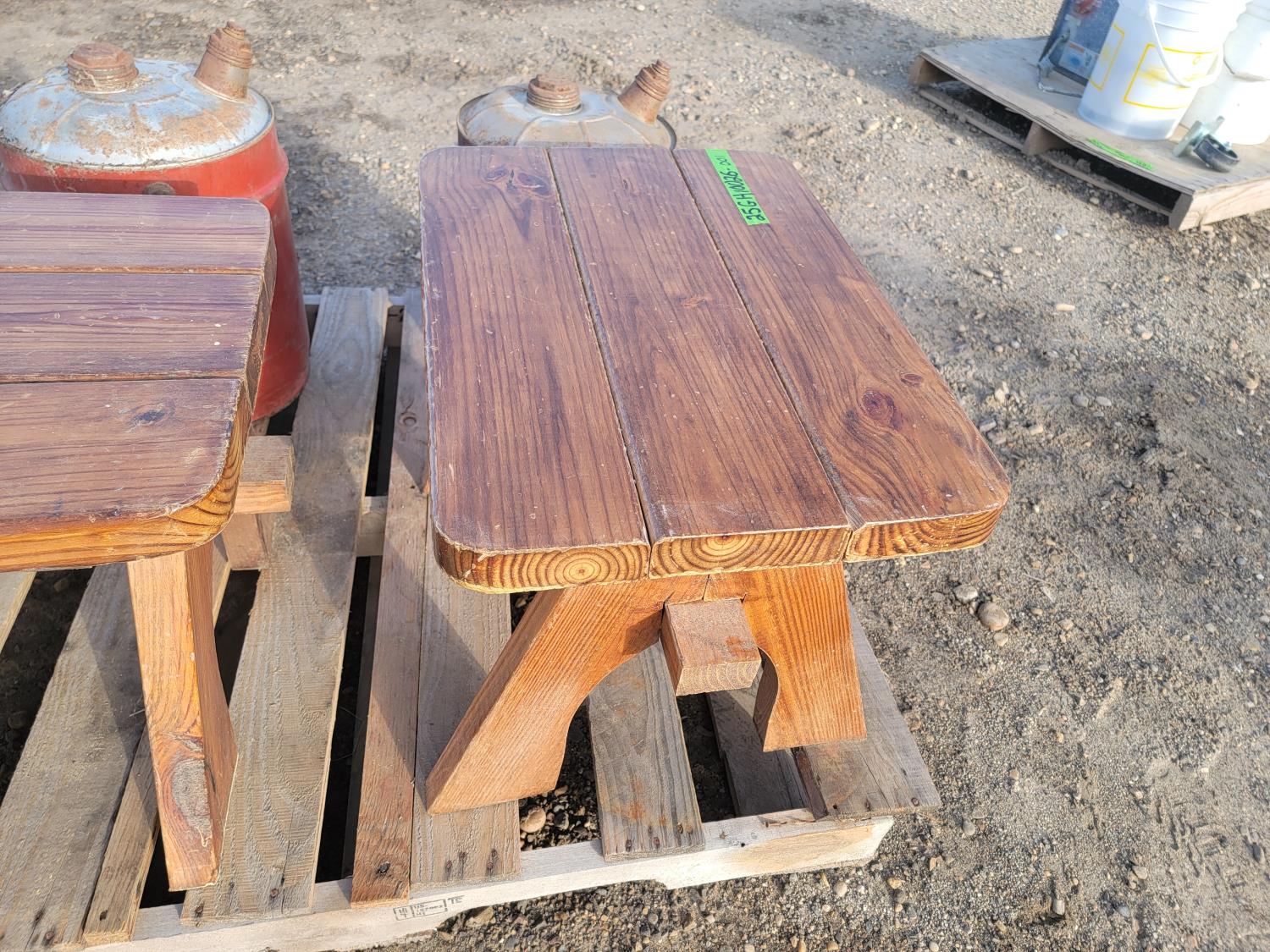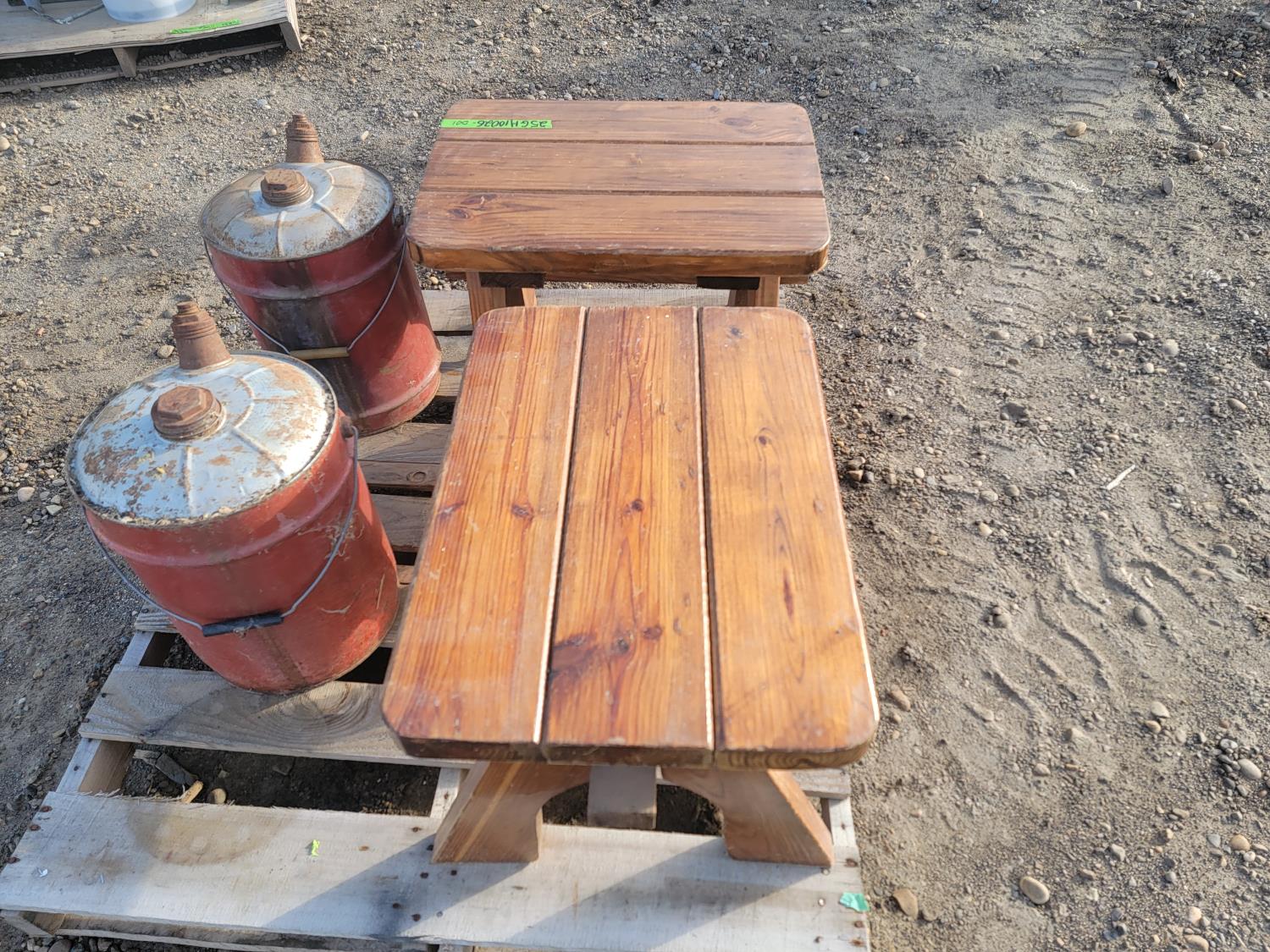 1653 (2) Wooden End Tables and (2) Vintage Gas Cans