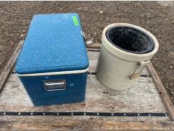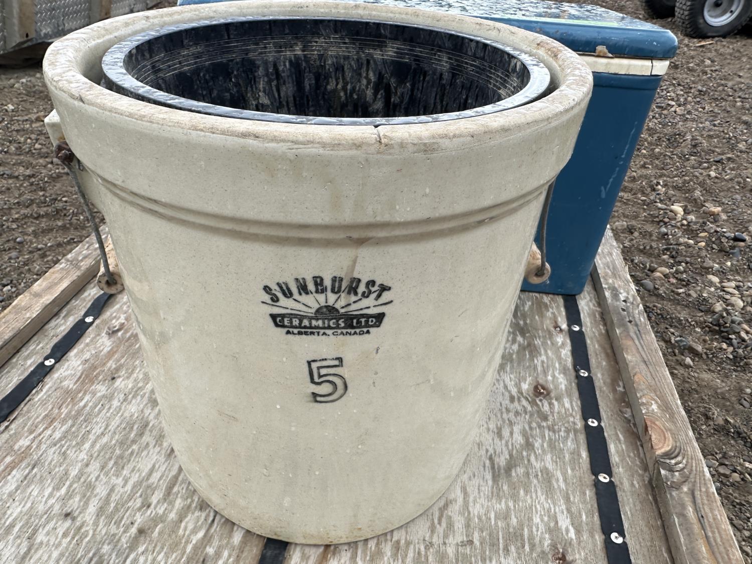 1613 Sunburst Ceramics 5 Gallon Crock and Cooler