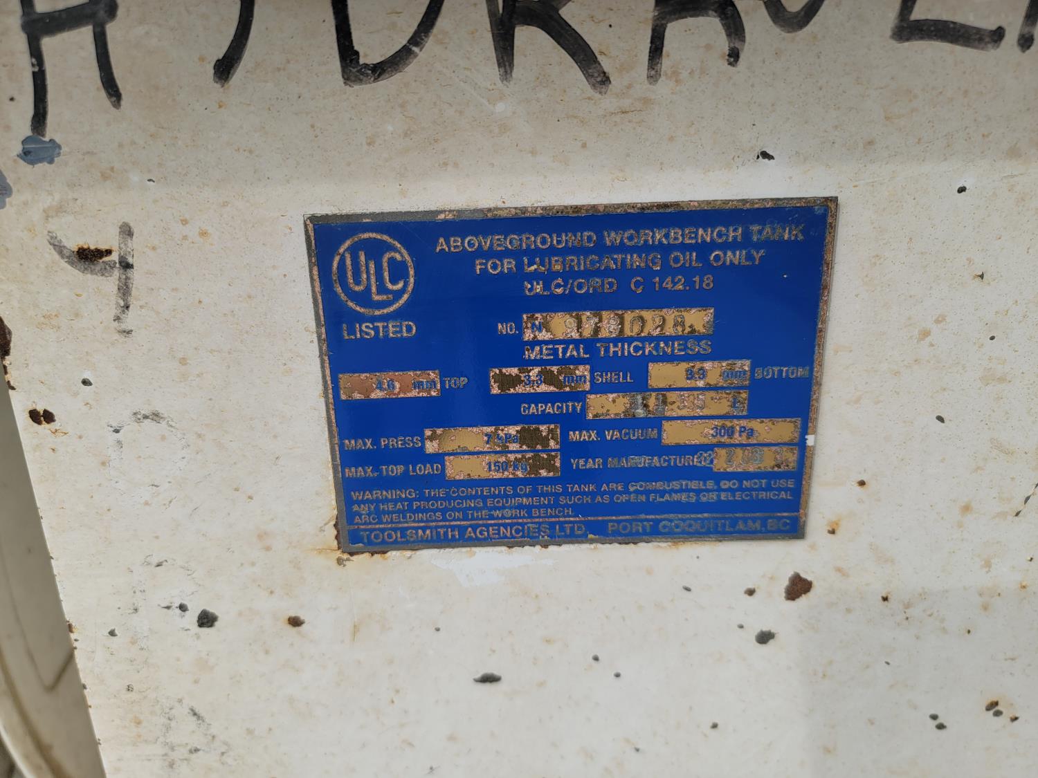 1705 Aboveground Workbench Tank For Lubricating Oil with (2) Retractable Reels and Hoses
