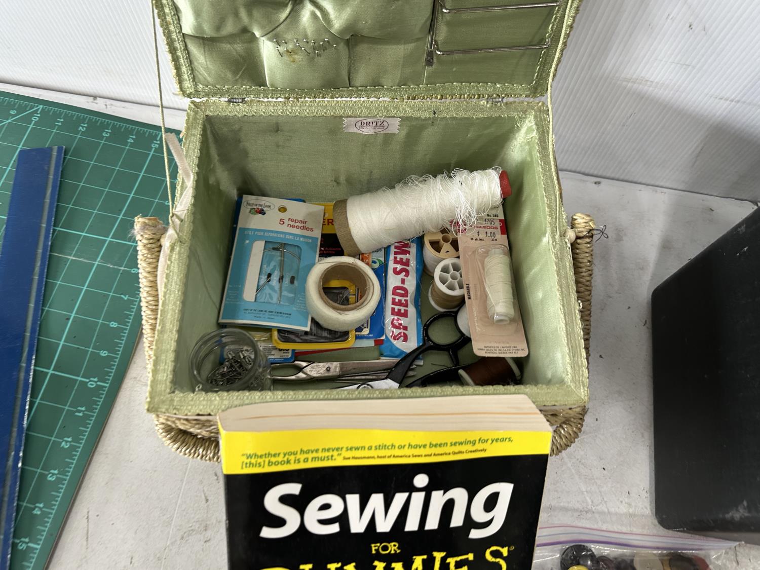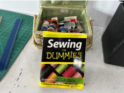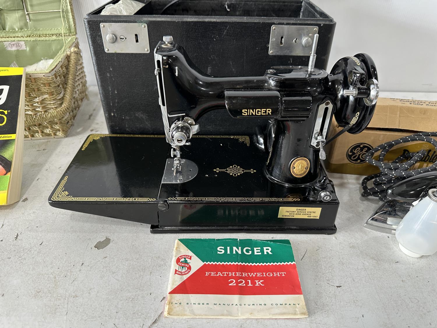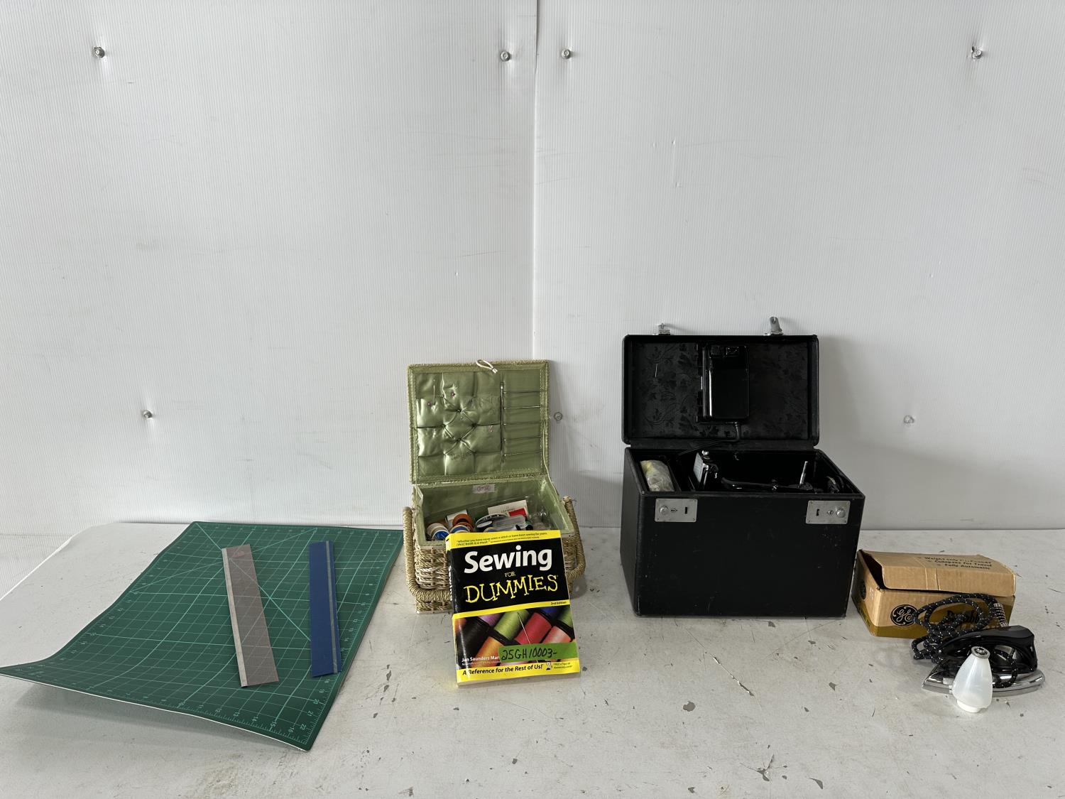 1080 Antique Portable Electric Singer Sewing Machine and Qty of Sewing Items