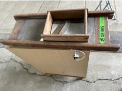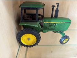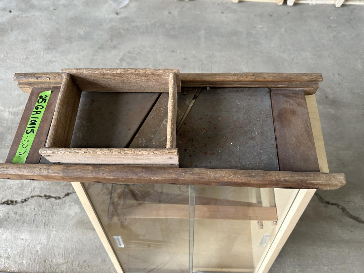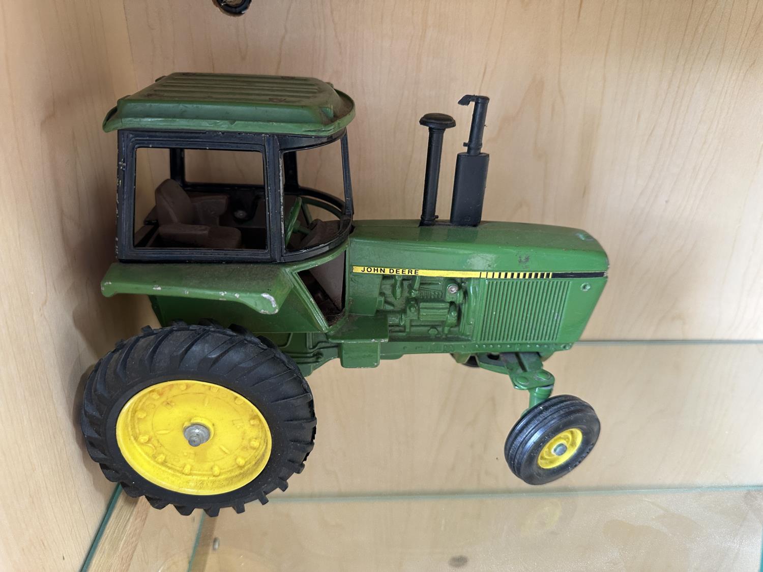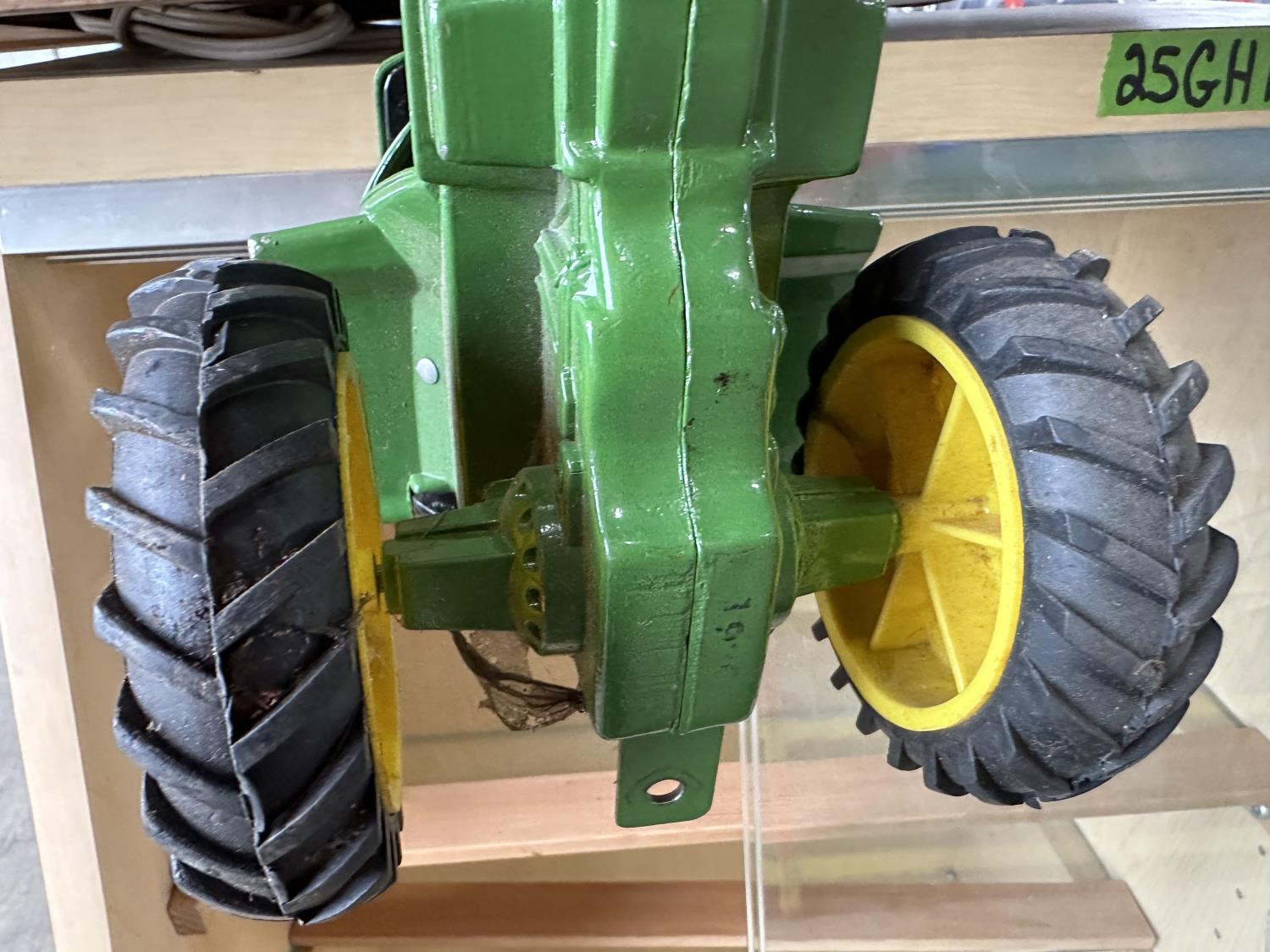 1198 Display Case with John Deere Toy Tractor and Antique Cabbage Cutter